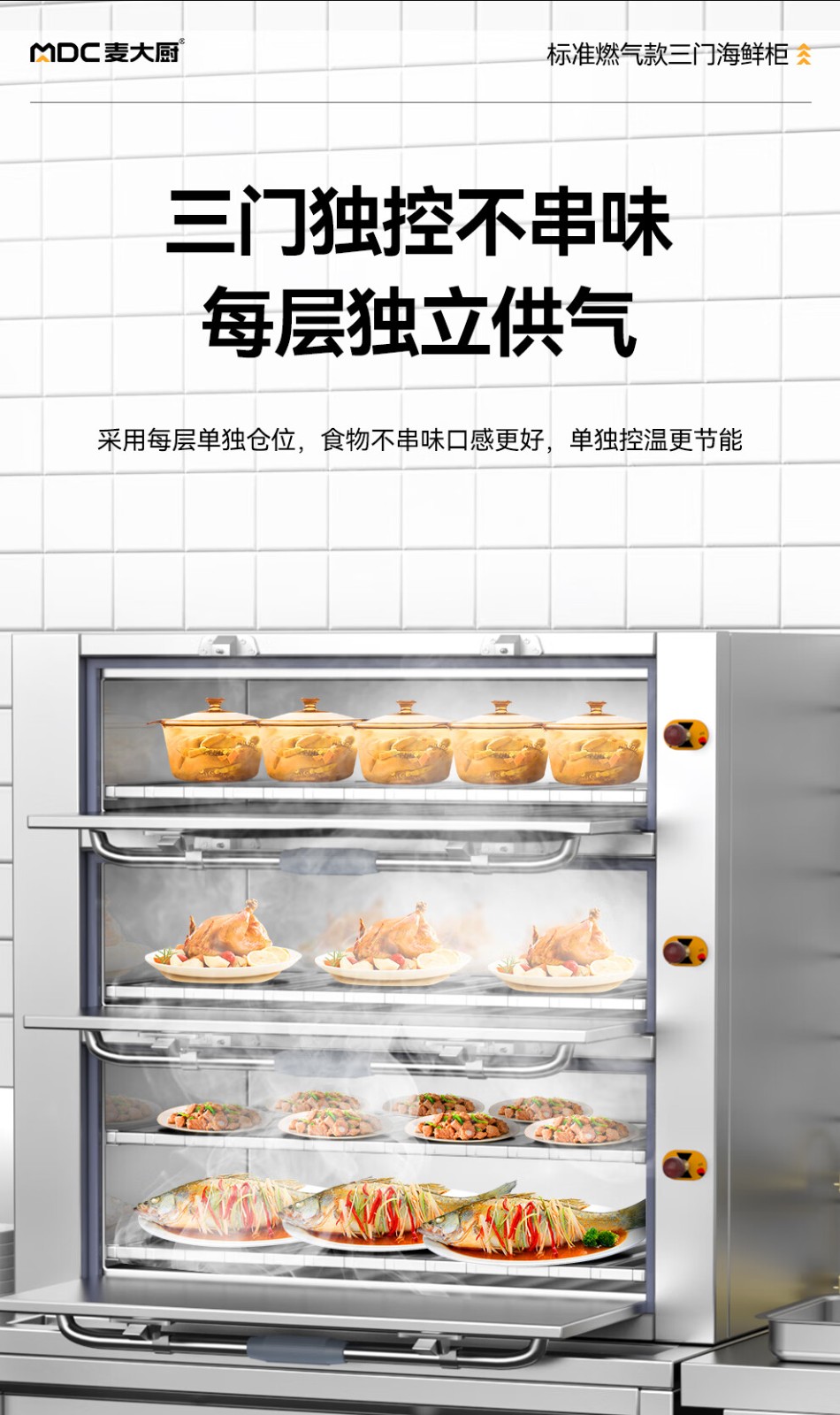 麦大厨商用蒸柜1100mm标准燃气款三门海鲜蒸柜