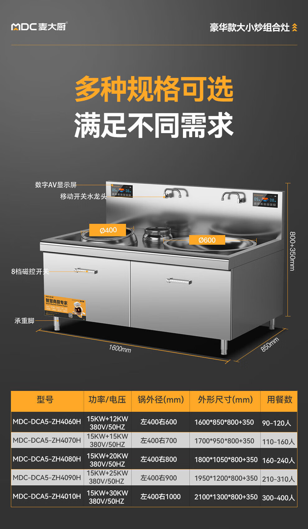 - 更多MDC商用大小组合炉规格咨询在线客服