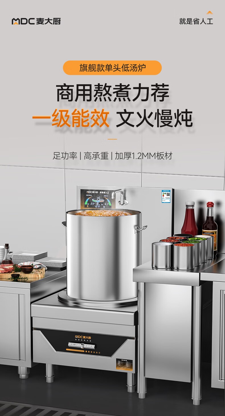 麦大厨商用旗舰款单头低汤炉矮仔炉8KW