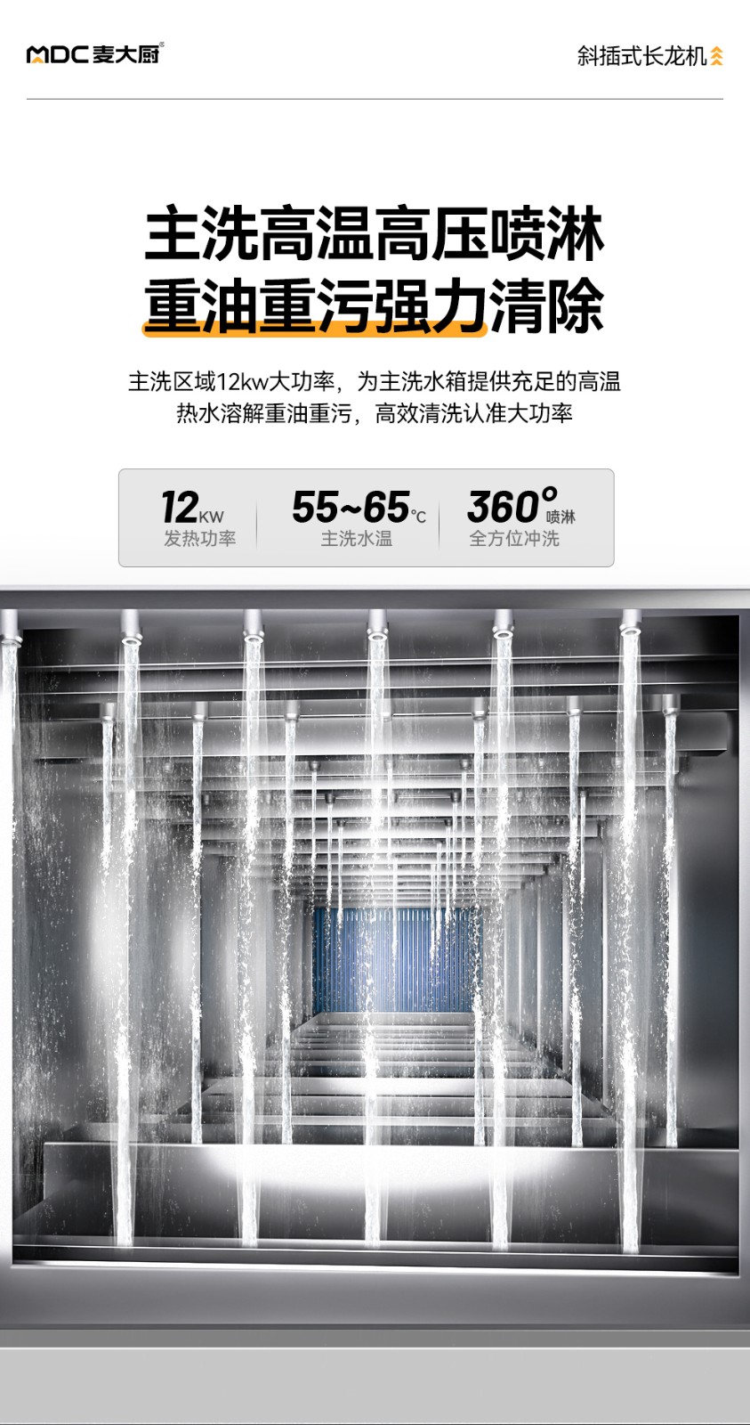 麦大厨豪华款3.1m斜插式单缸单喷淋单烘干洗碗机商用