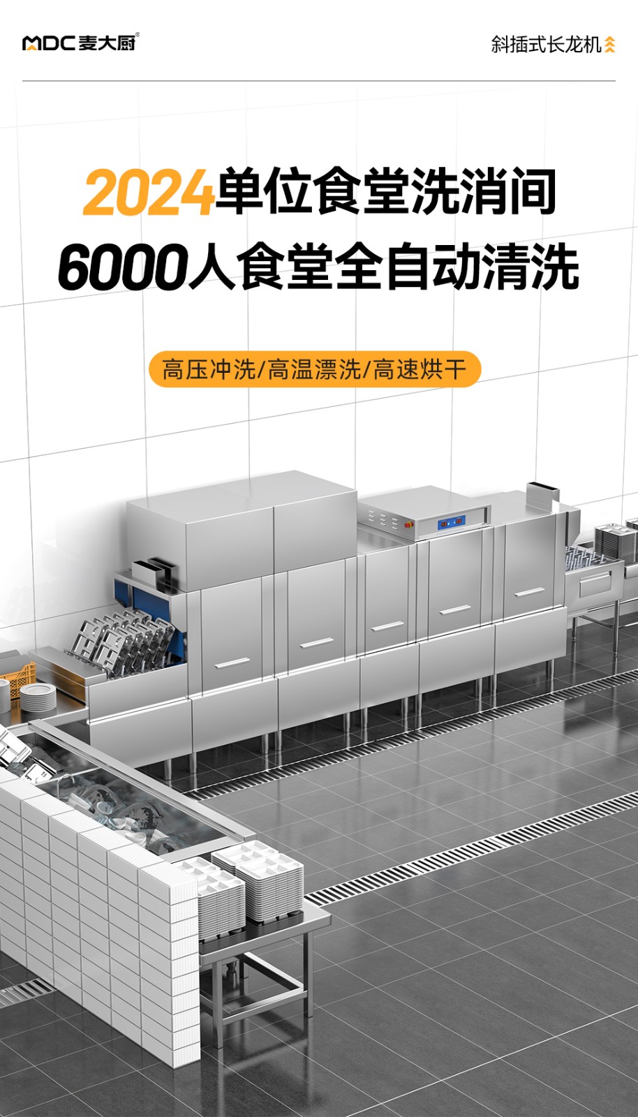 麦大厨豪华款3.8m斜插式双缸双喷淋洗碗机商用