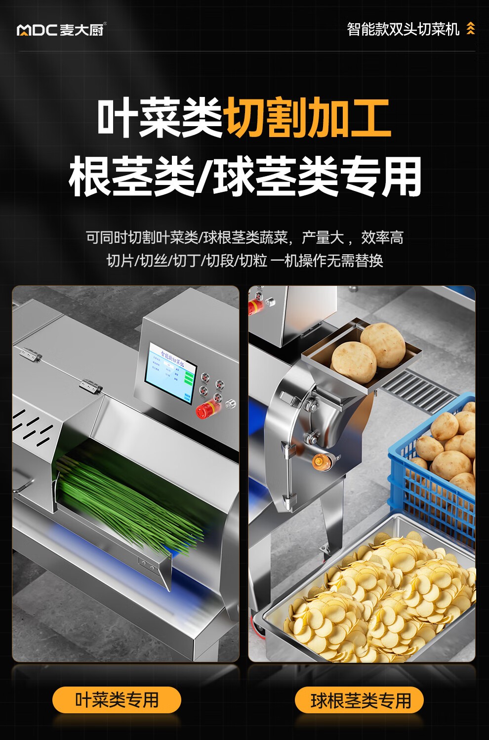 麦大厨商用切菜机多功能双头变频食堂厨房电动叶菜根茎切碎机