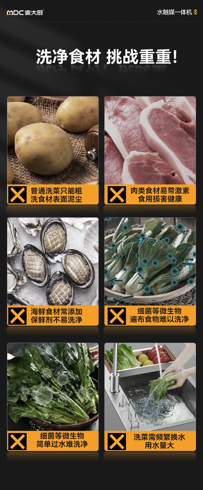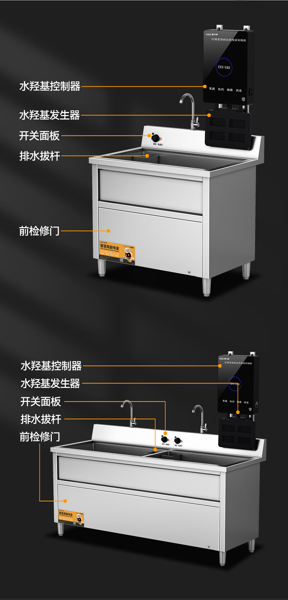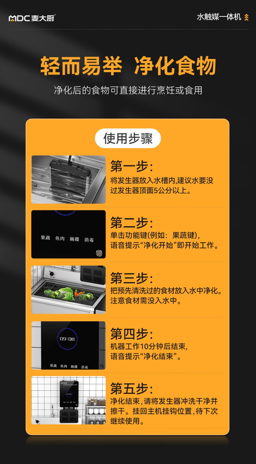 麦大厨1.0m单槽壁挂式水触媒净化清洗一体机商用