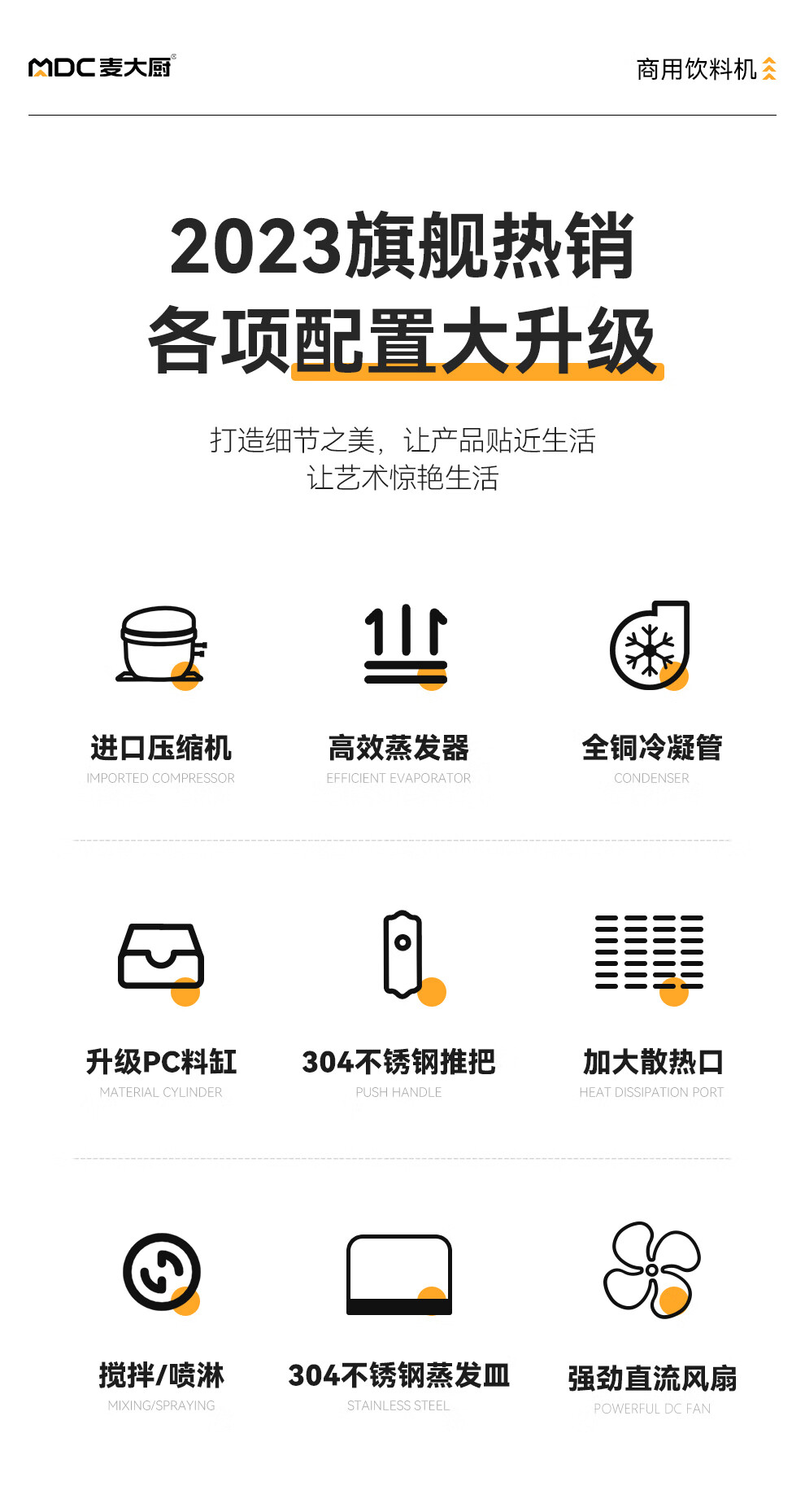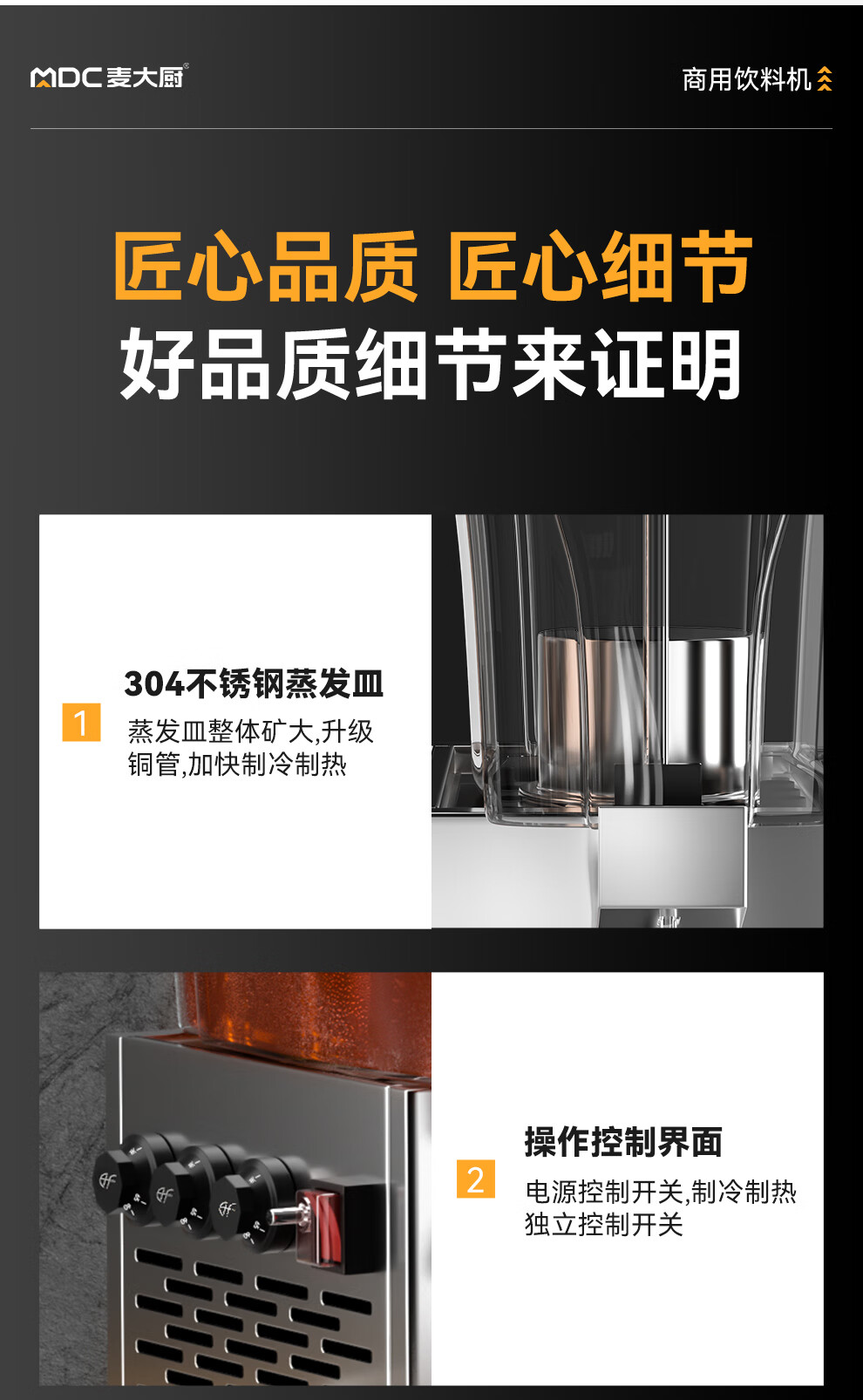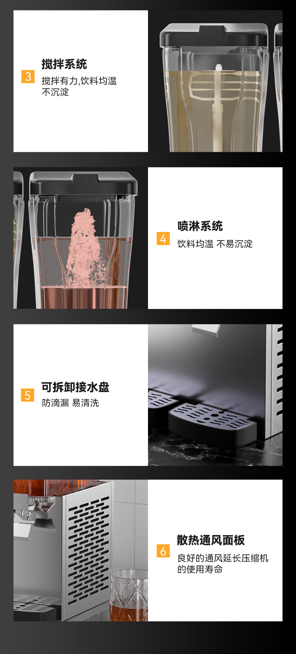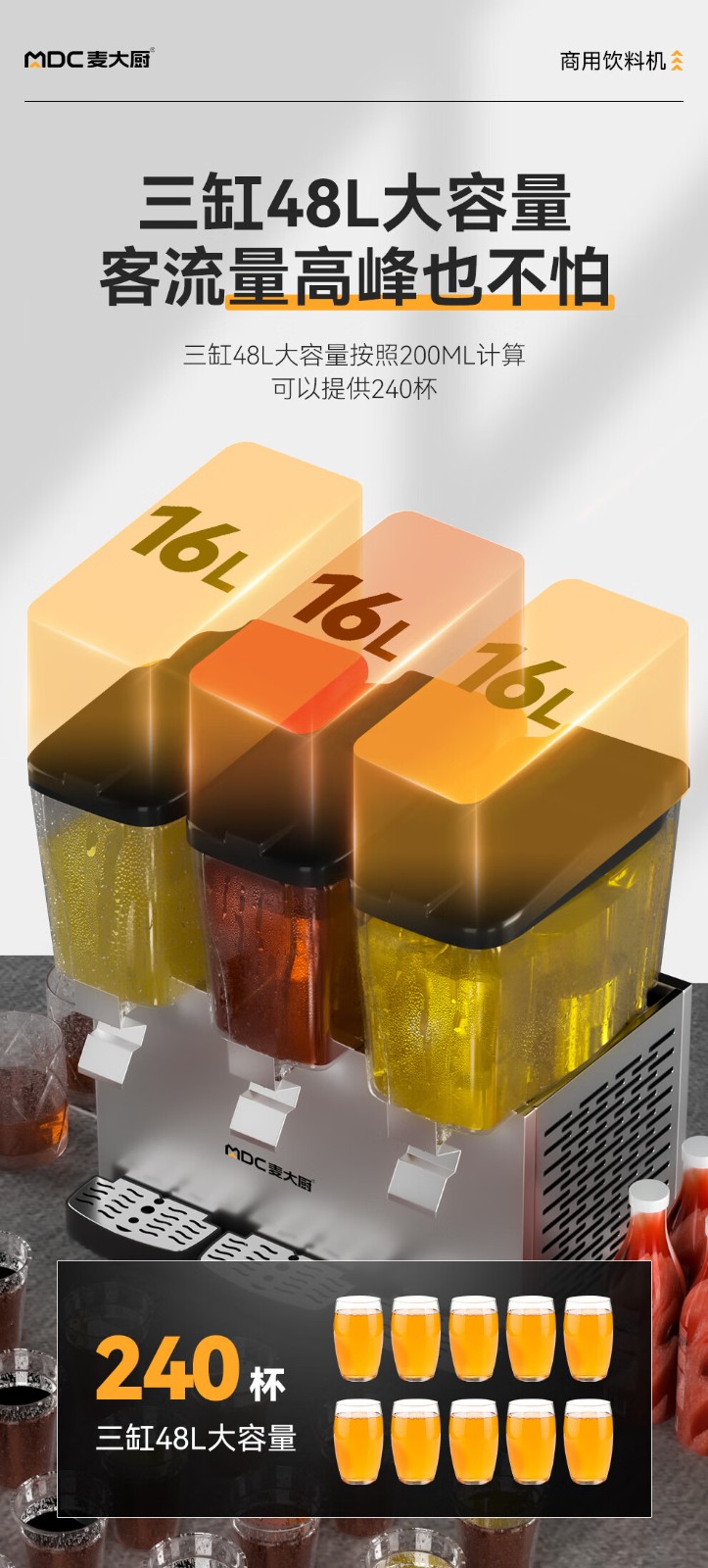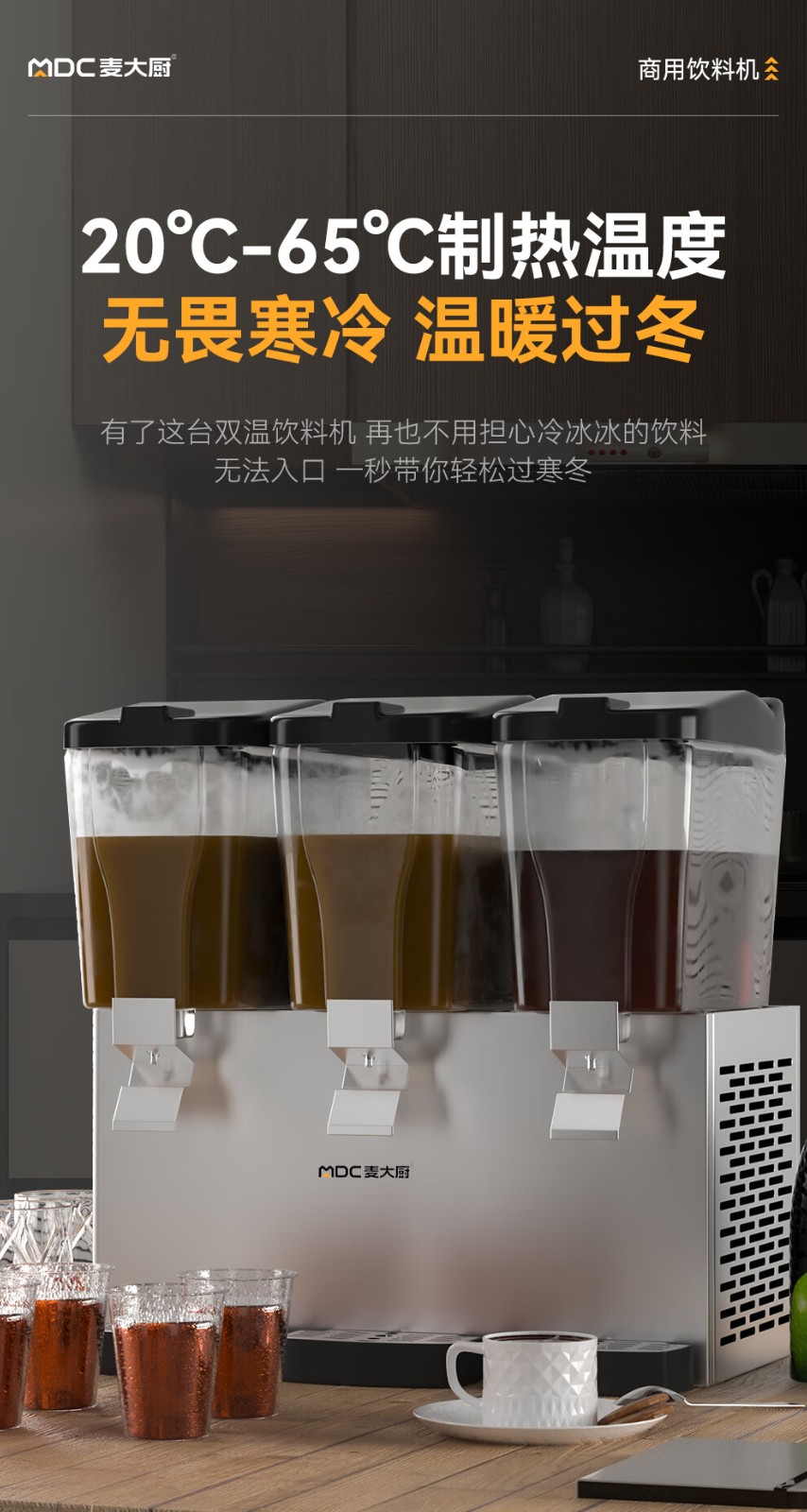 麦大厨220V标准款三缸冷热喷淋式饮料机商用450W