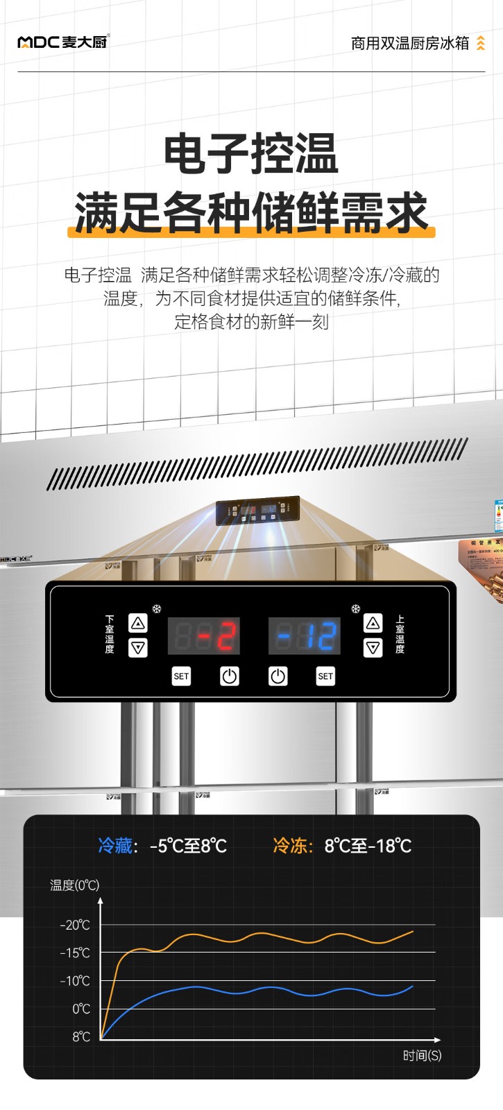 冷冻温度范围:8℃~-18℃