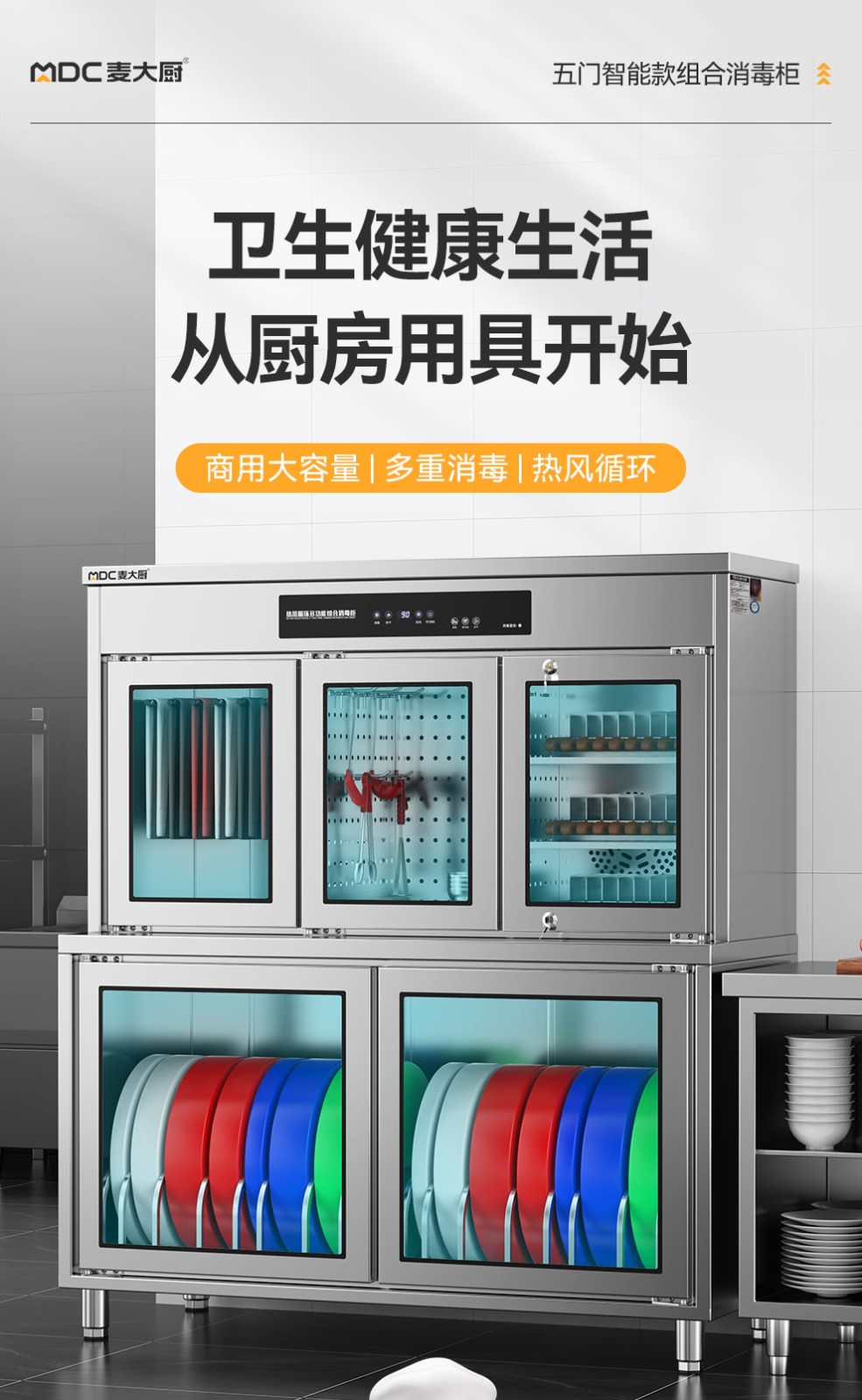 麦大厨智能款五门厨房用具组合臭氧紫外线热风循环消毒柜