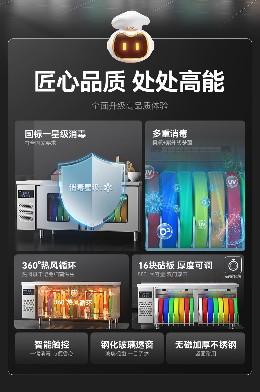 麦大厨1.8m双门砧板组合臭氧紫外线热风循环消毒工作台