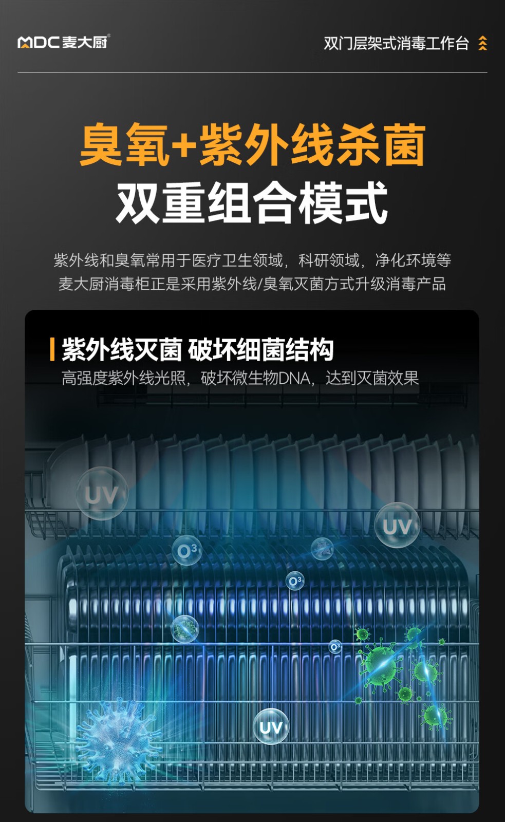 麦大厨1.8m双门层架式臭氧紫外线热风循环消毒工作台