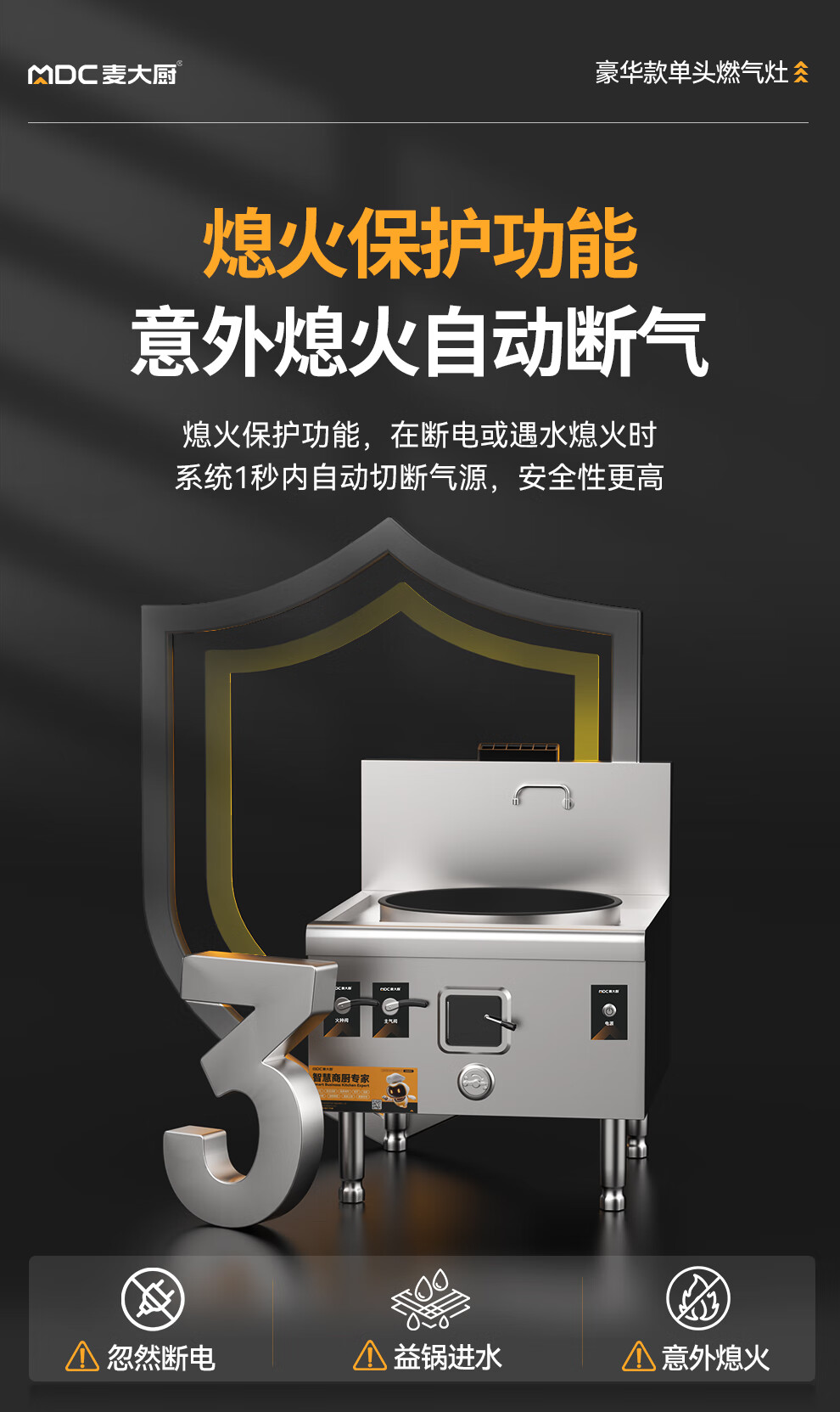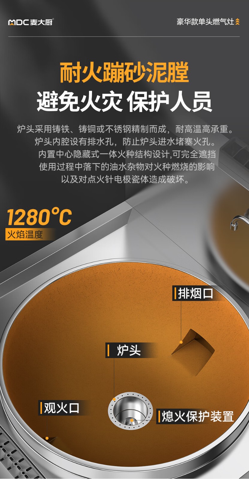 麦大厨燃气猛火大锅灶豪华款燃气单头大炒炉1000