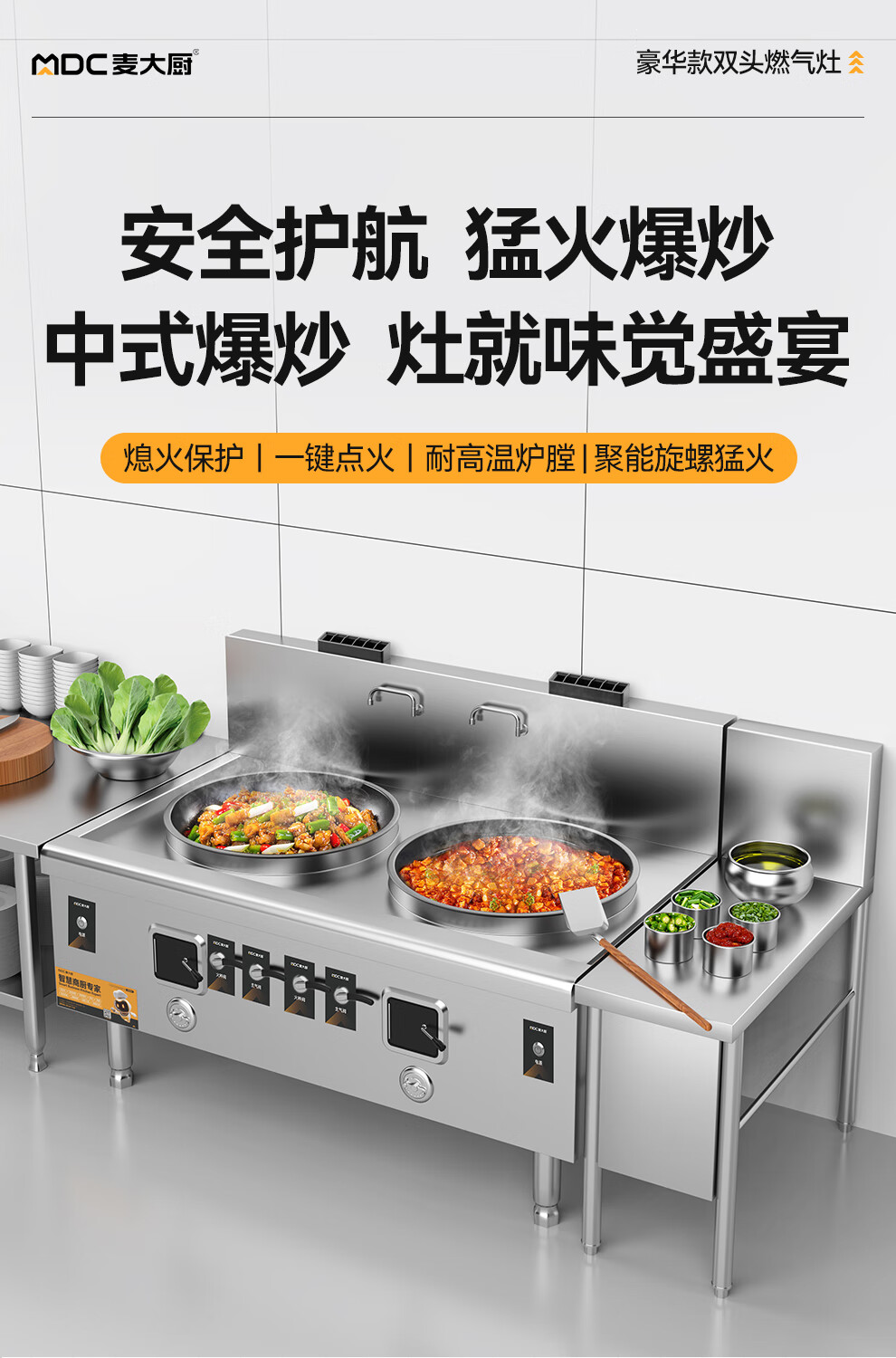 麦大厨燃气猛火大锅灶豪华款燃气双头大炒炉1000
