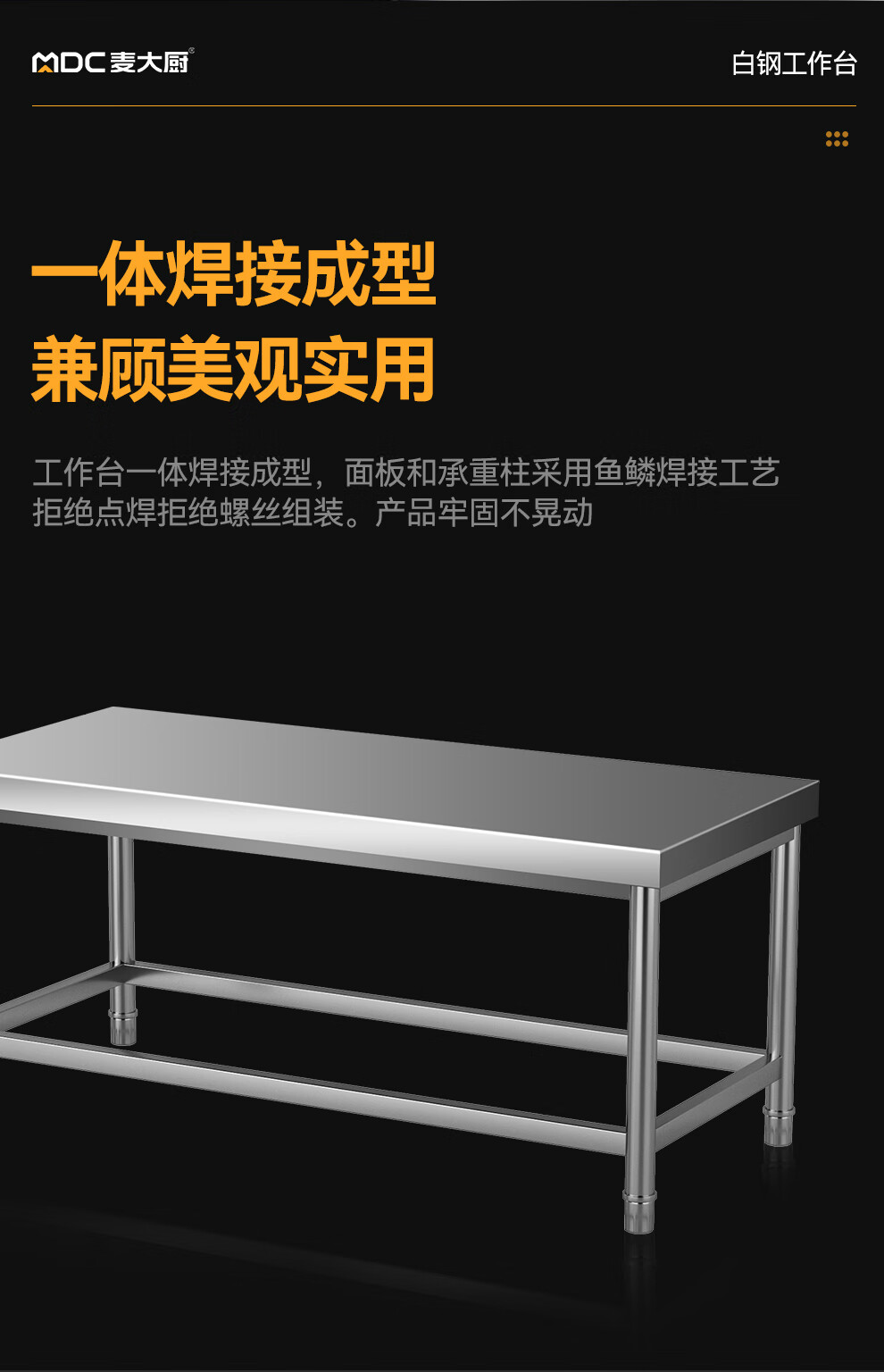 麦大厨1.8m升级款不锈钢工作台打荷台单层工作台