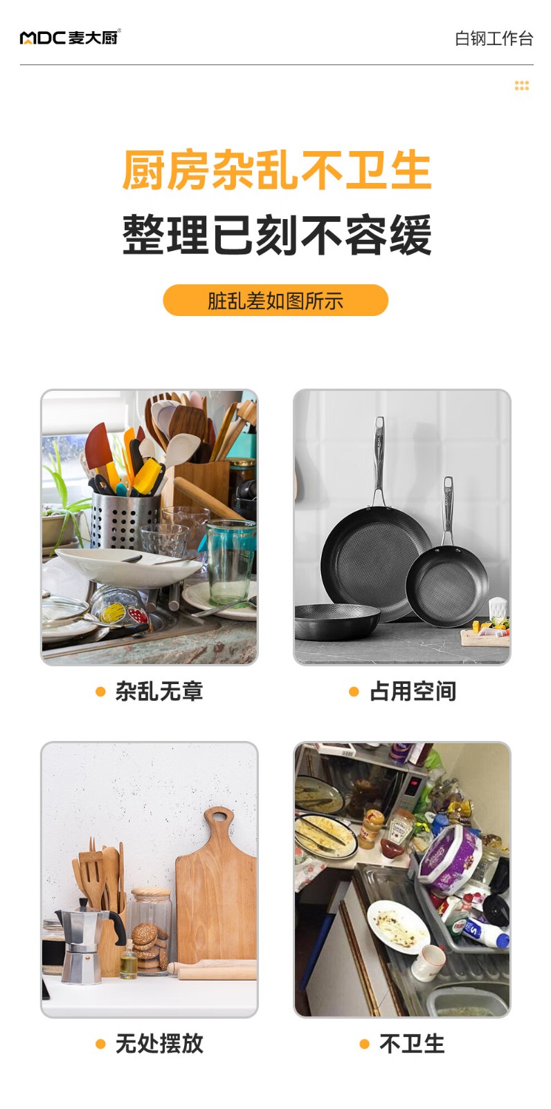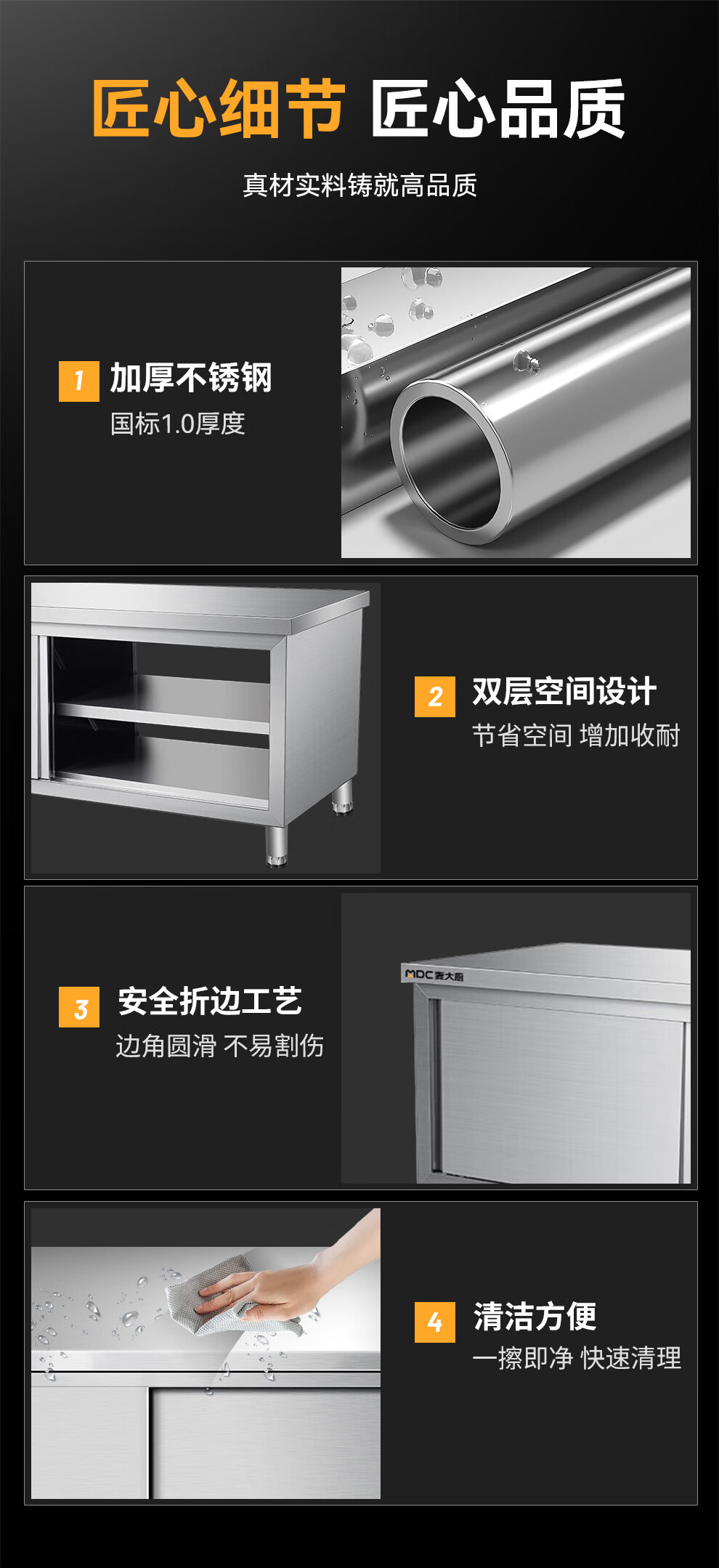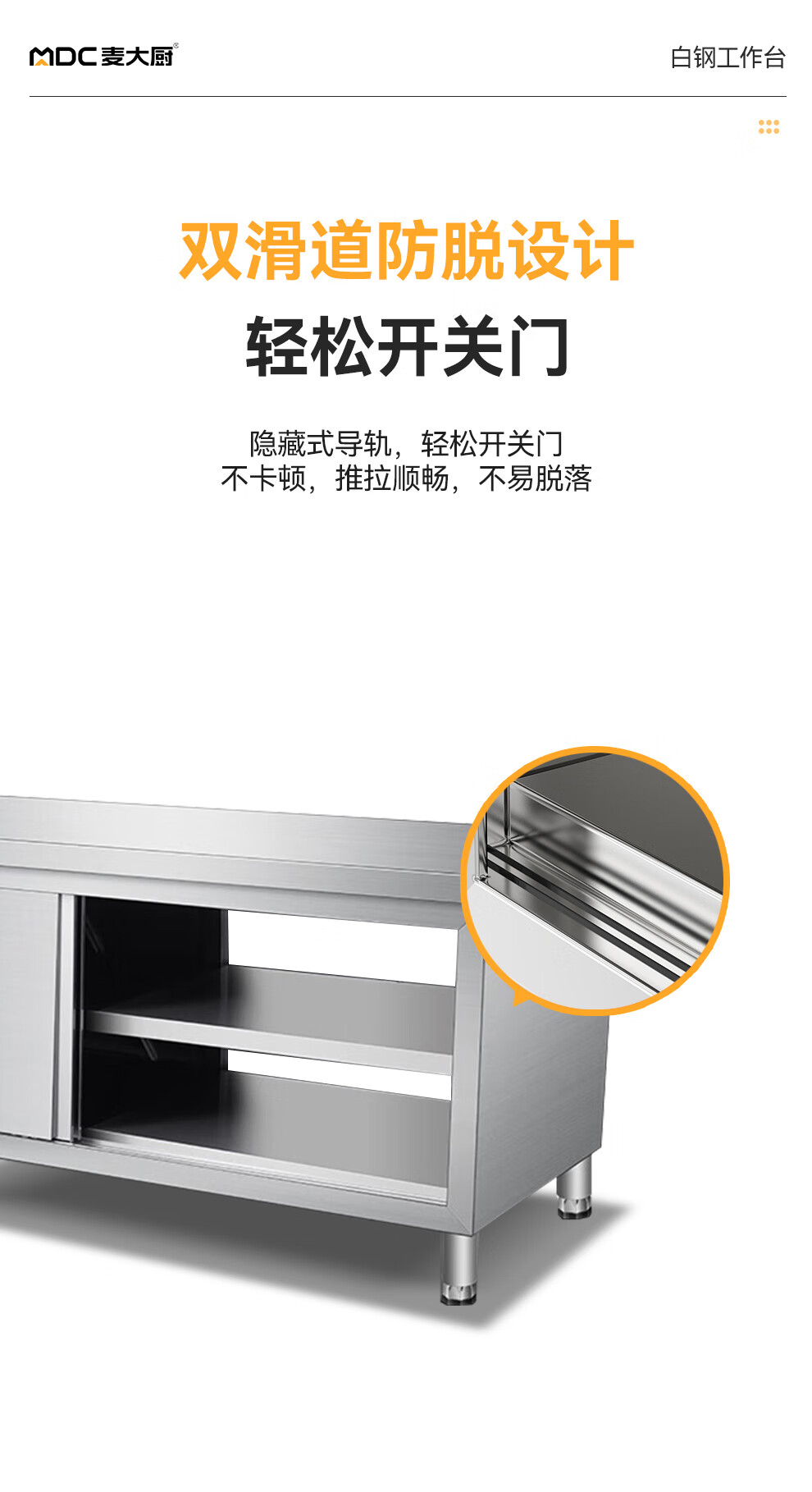 麦大厨2.0m升级款不锈钢工作台双通工作台带靠背