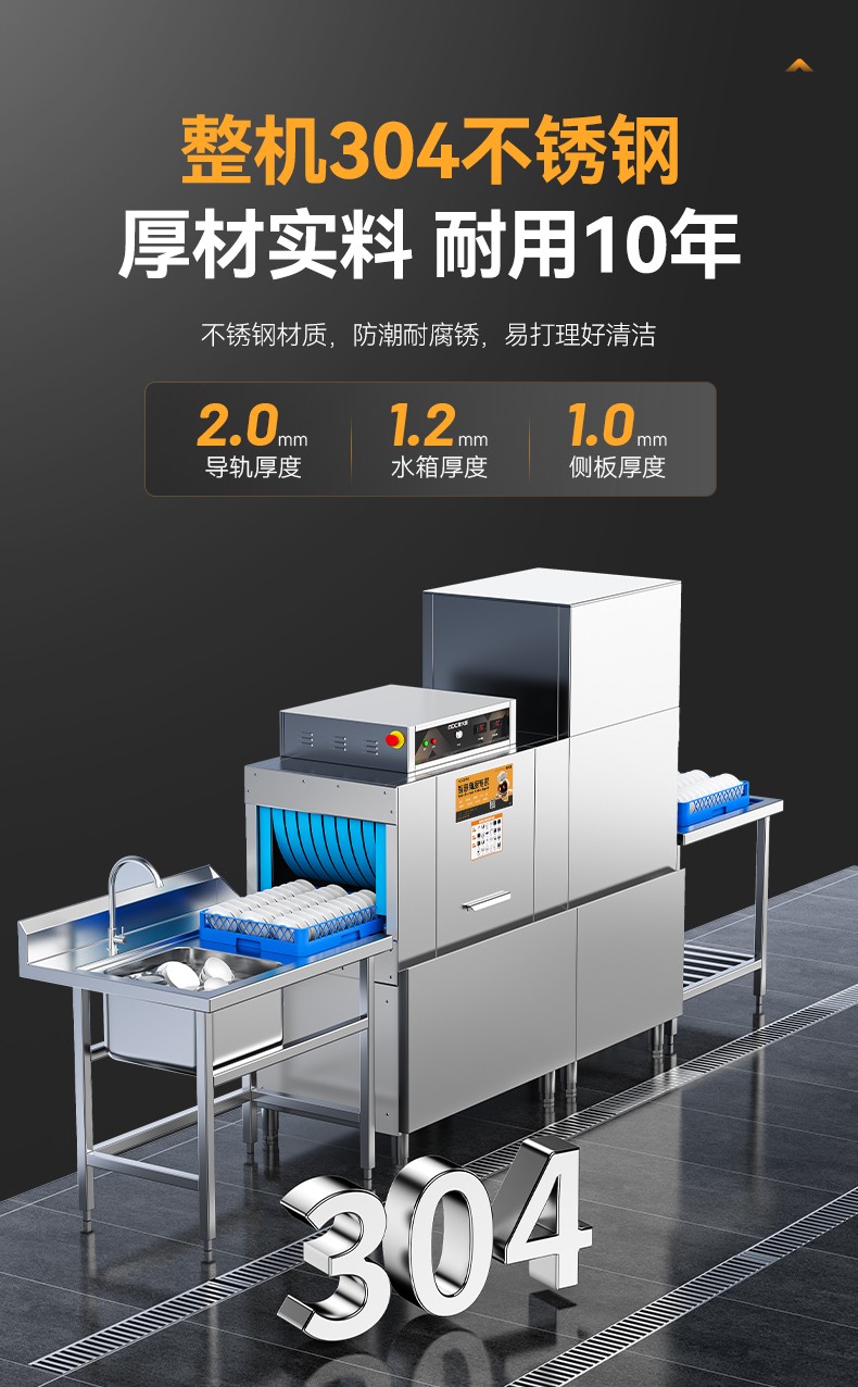麦大厨1.9米通道式单缸单喷单烘干商用洗碗机