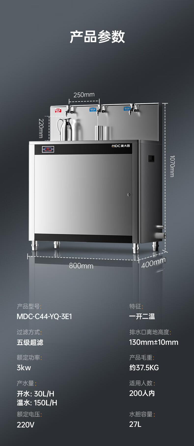 温开水产水量:150L/h