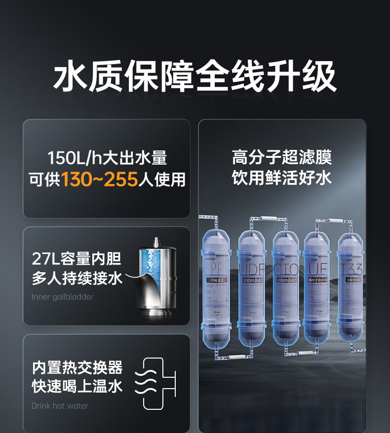 麦大厨3KW柜式触控饮水机一开二温快接五级超滤直饮机