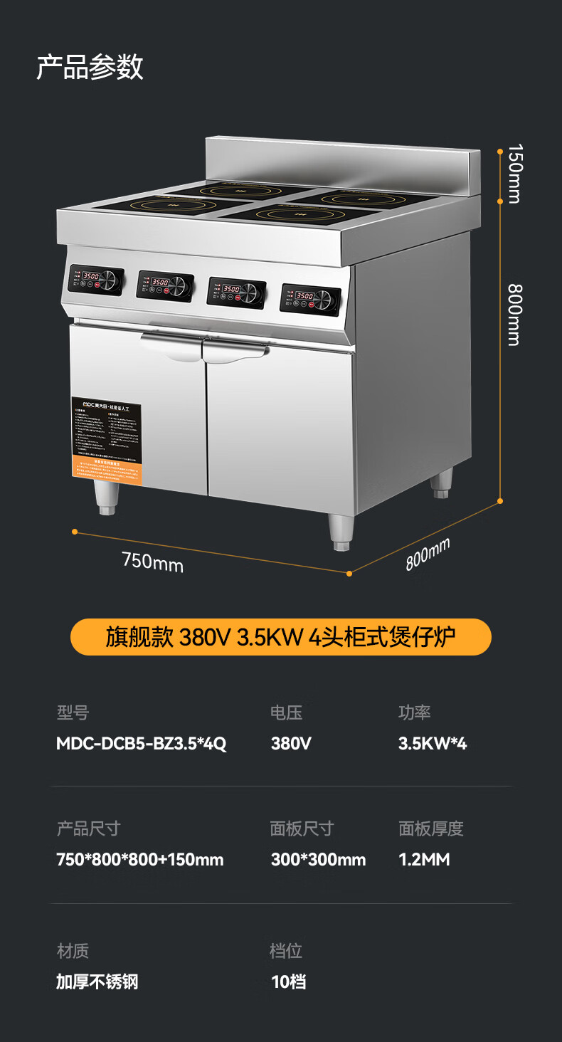 麦大厨商用多头电磁炉旗舰款四头柜式煲仔炉3.5KW