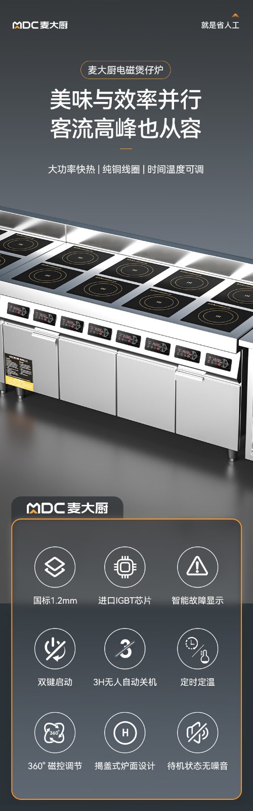 麦大厨商用多头电磁炉旗舰款八头柜式煲仔炉5KW