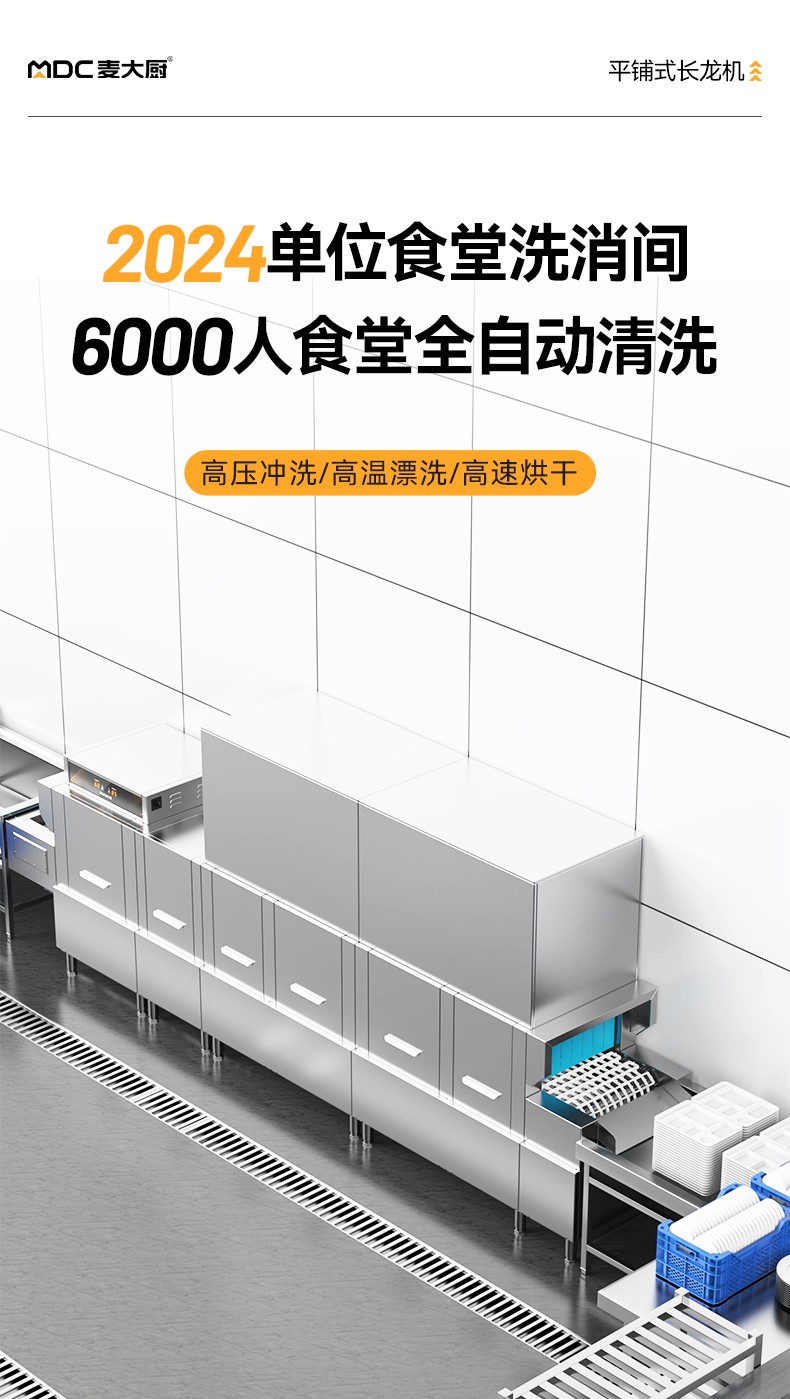 麦大厨4.9m豪华款平放式单缸双喷淋双烘干商用大型洗碗机
