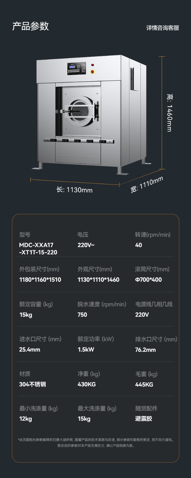 - 更多MDC商用洗脱一体机规格咨询在线客服