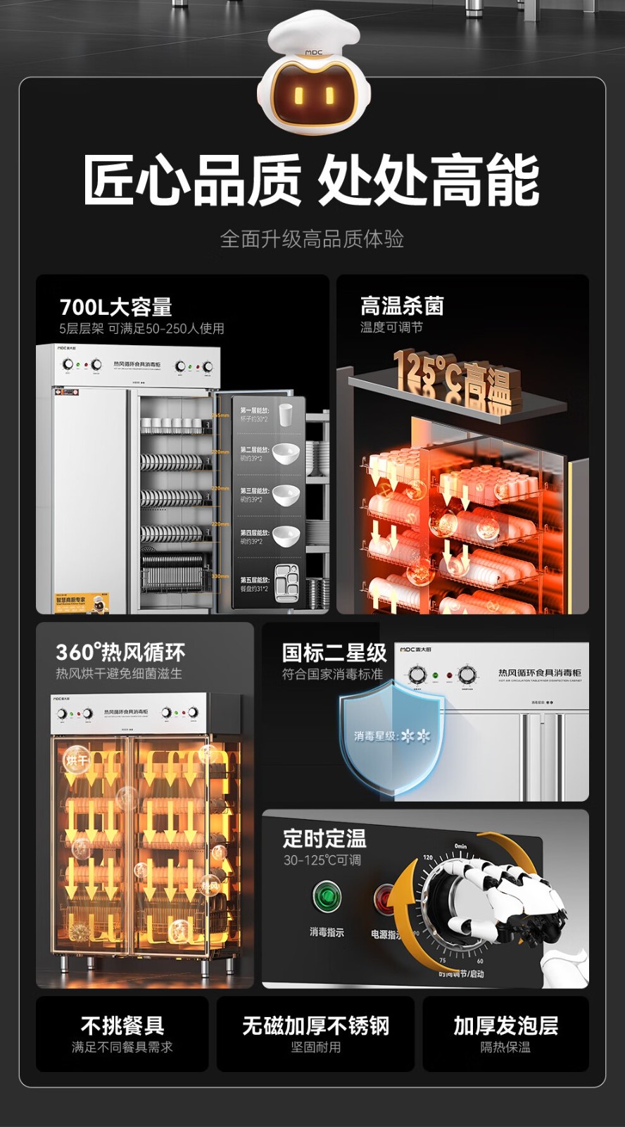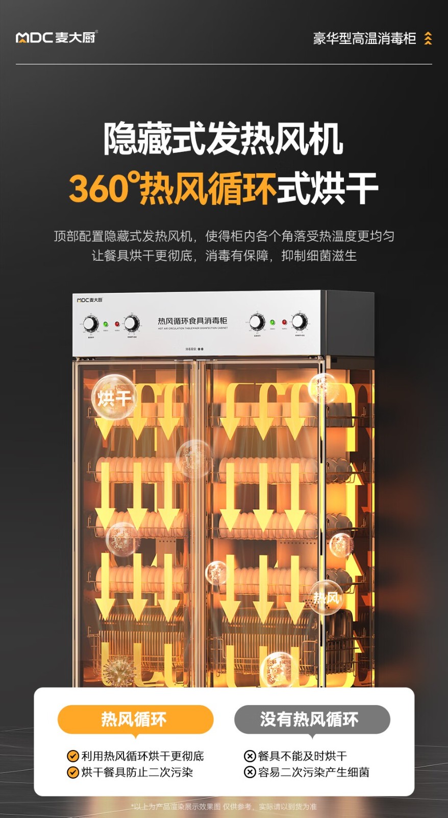 麦大厨豪华旋钮型双门双控5层热风循环高温消毒柜1870W