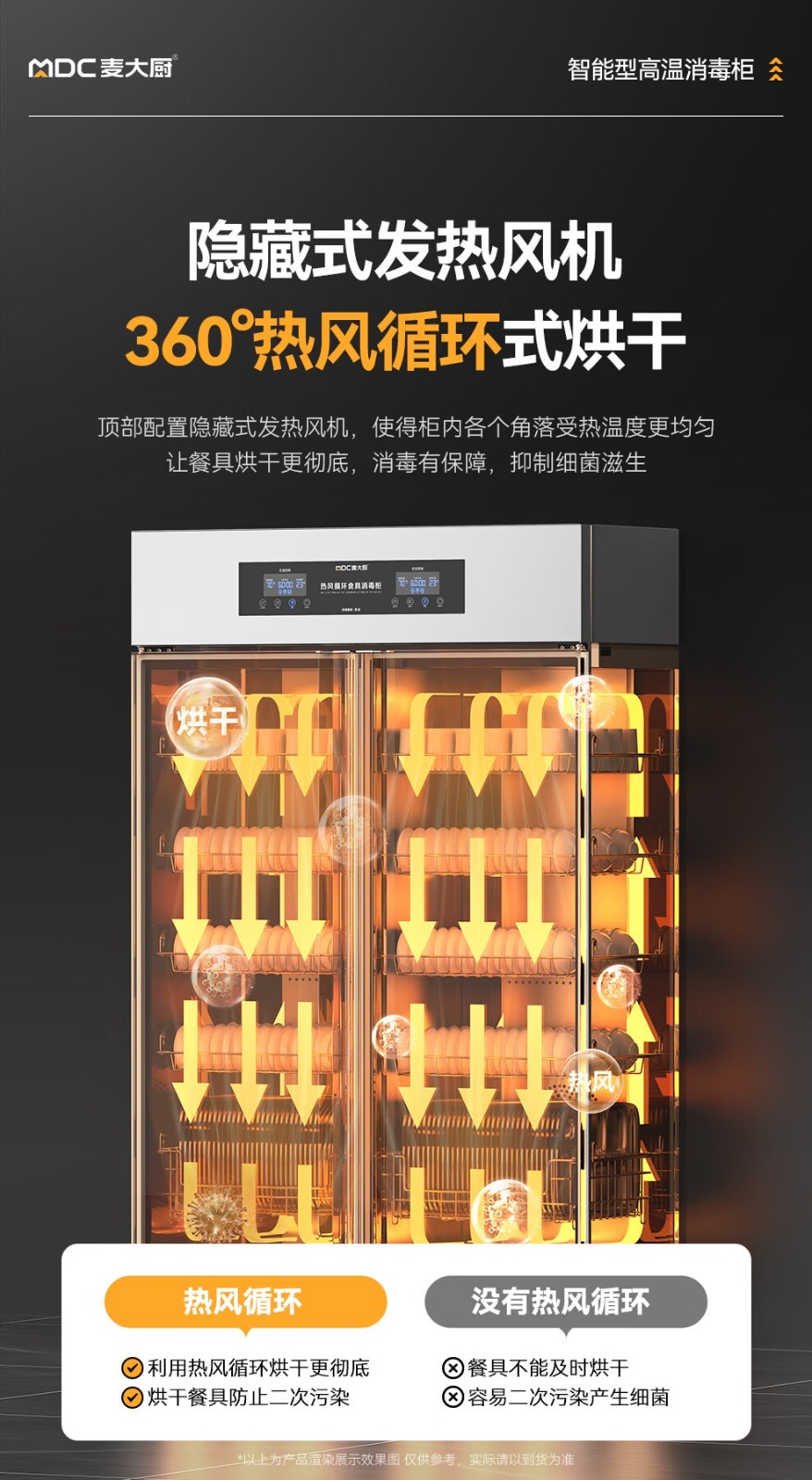 麦大厨智能电脑型双门双控5层热风循环高温消毒柜1870W