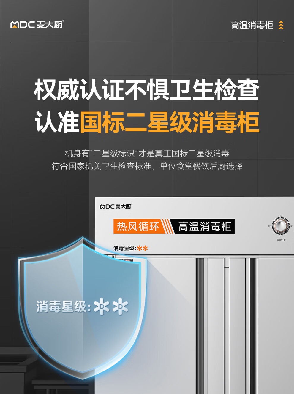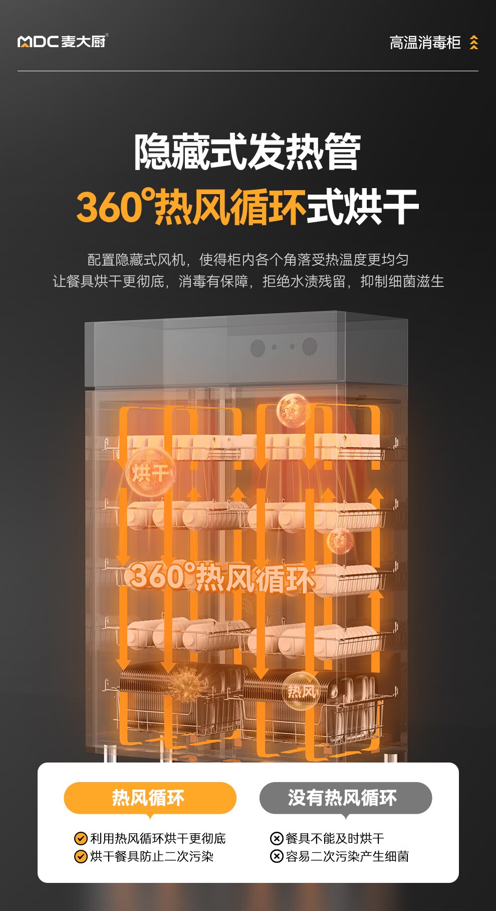 麦大厨经典旋钮款双门单控5层热风循环高温消毒柜1550W