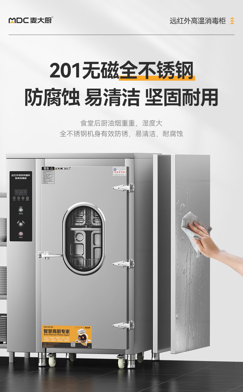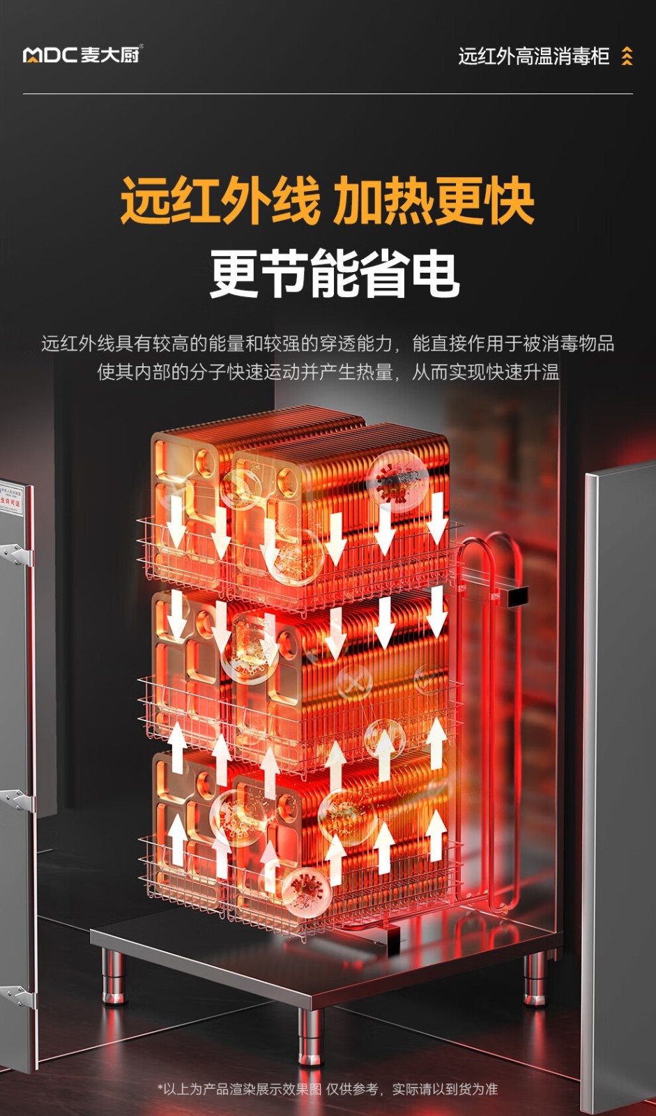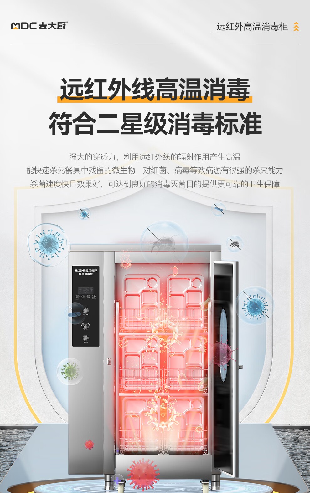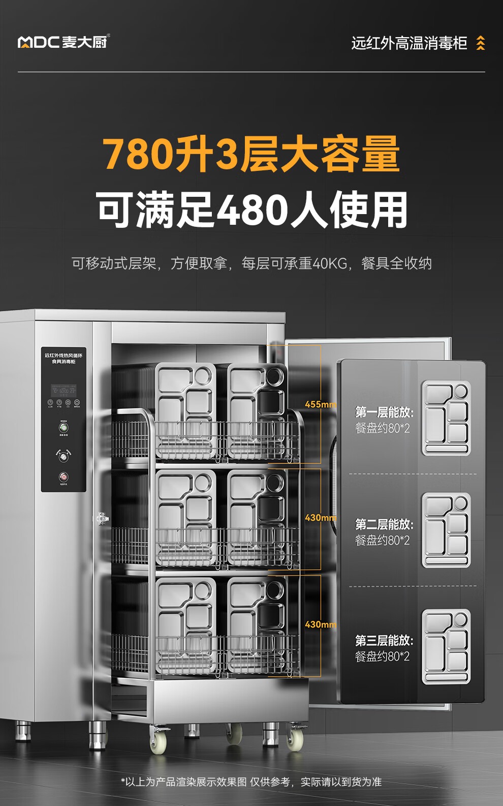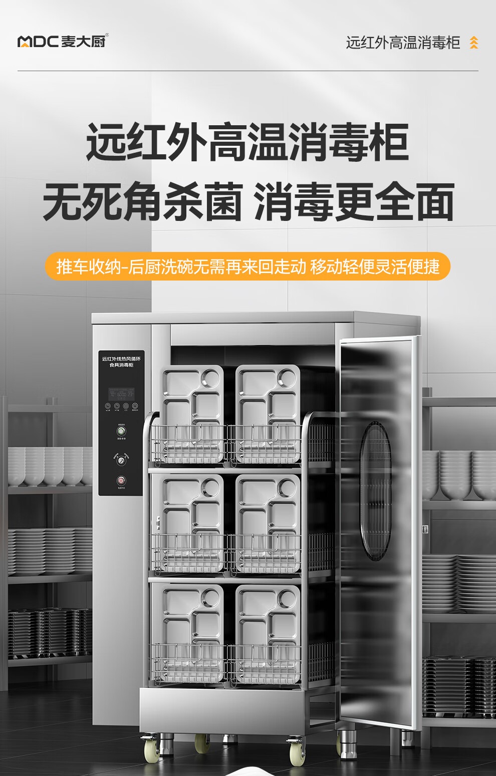 麦大厨380V工程款单门单控3层推车式远红外线热风循环高温消毒柜4.5KW