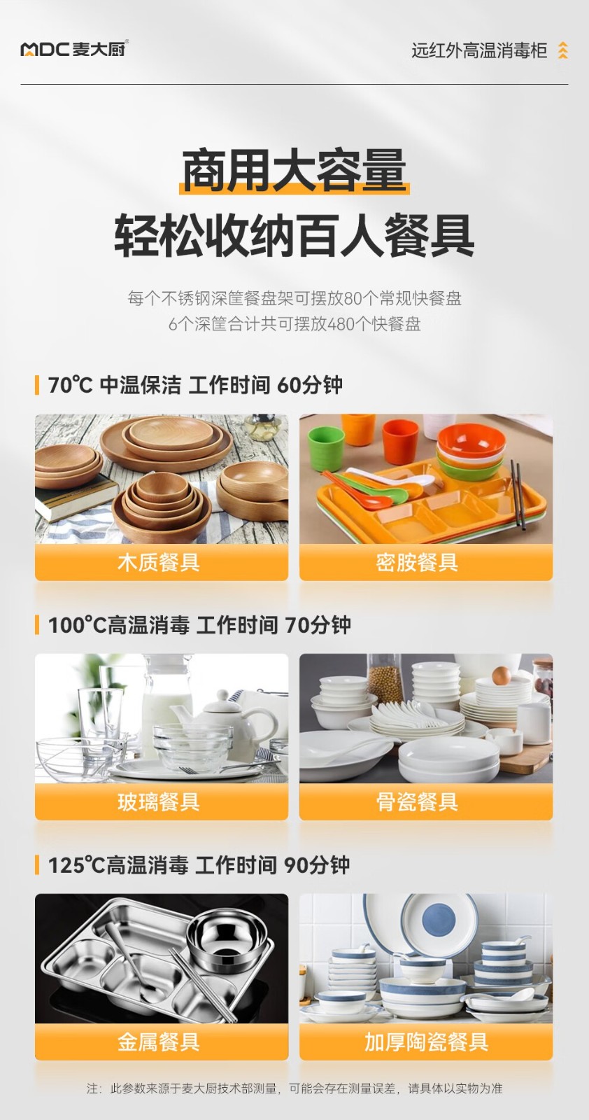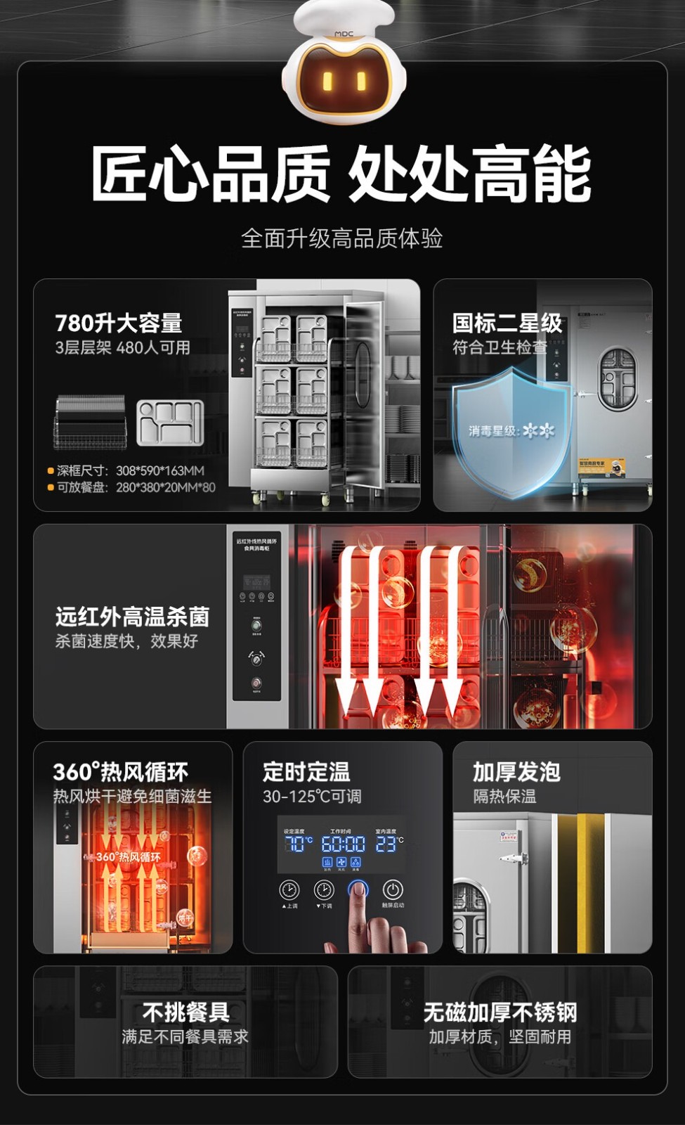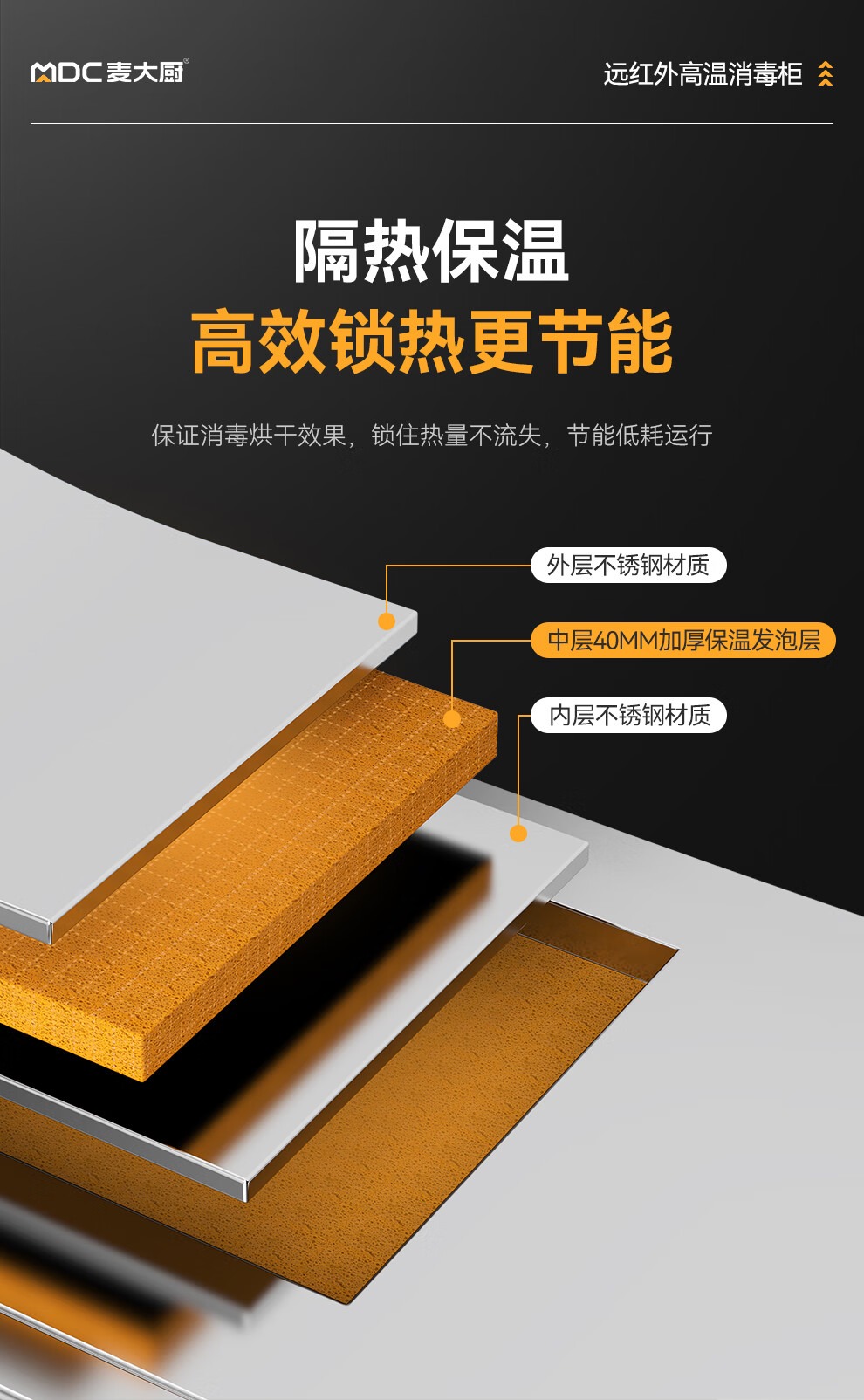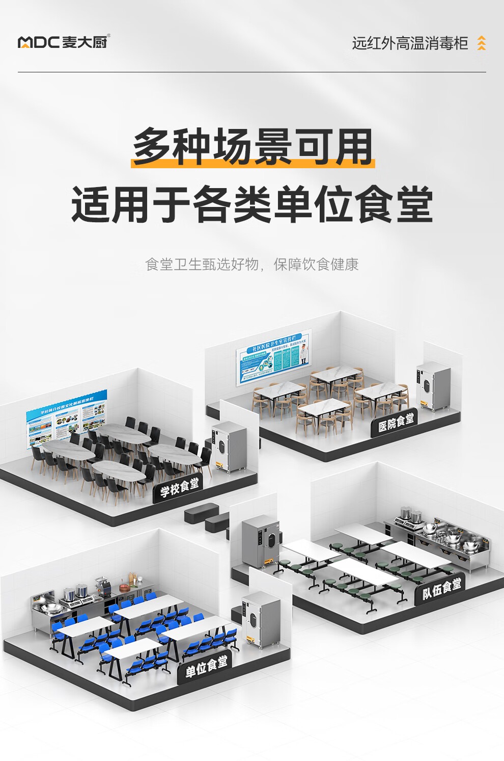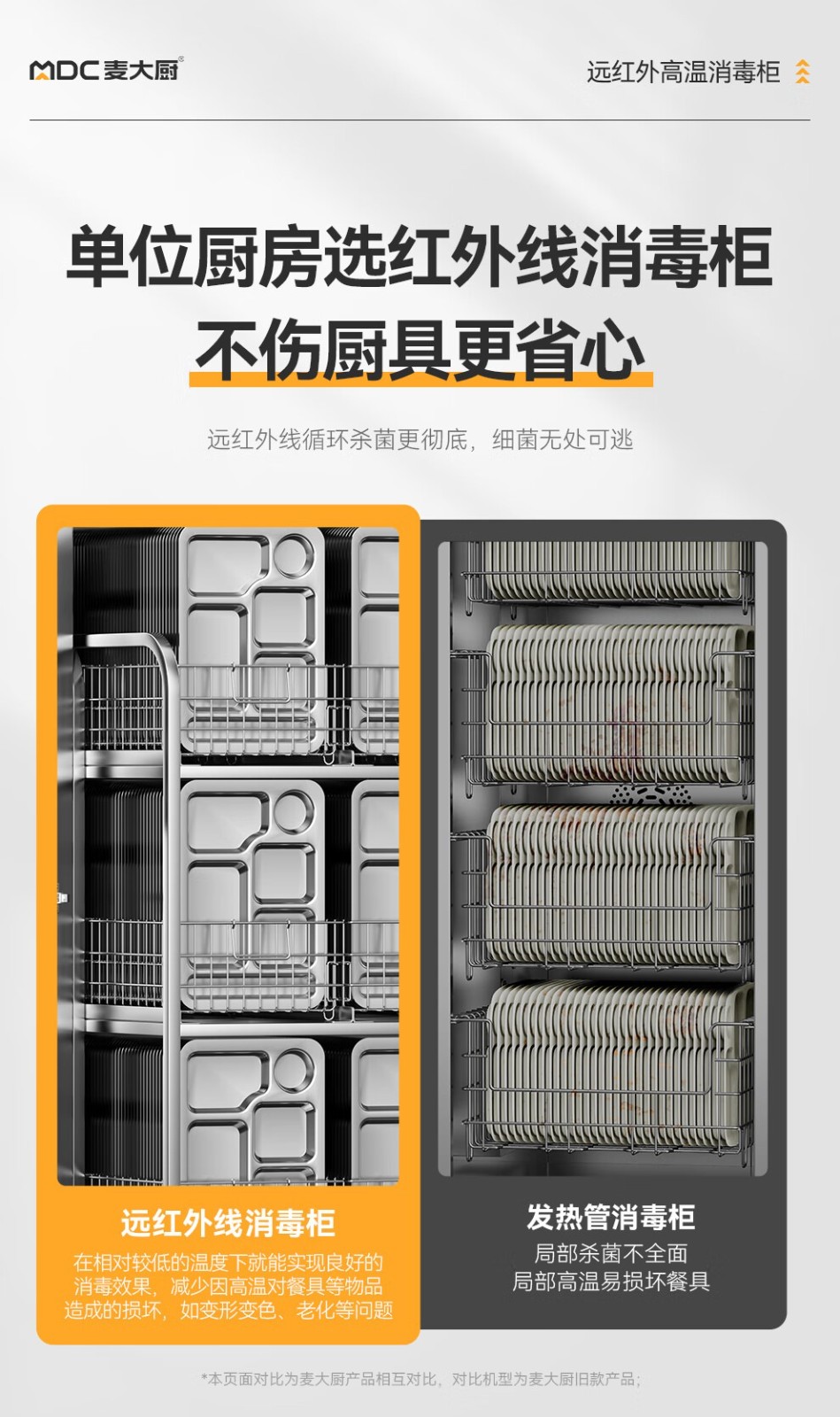 麦大厨380V工程款单门单控3层推车式远红外线热风循环高温消毒柜4.5KW