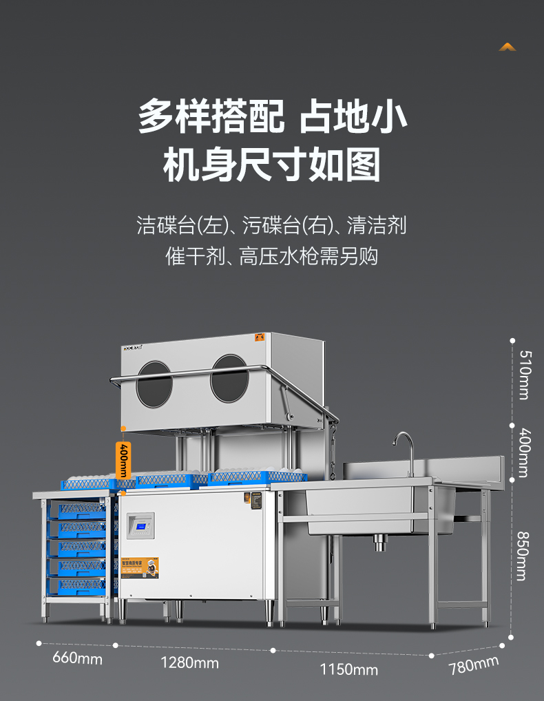 麦大厨RNHS-P50双框热能回收款揭盖式洗碗机10.5kw
