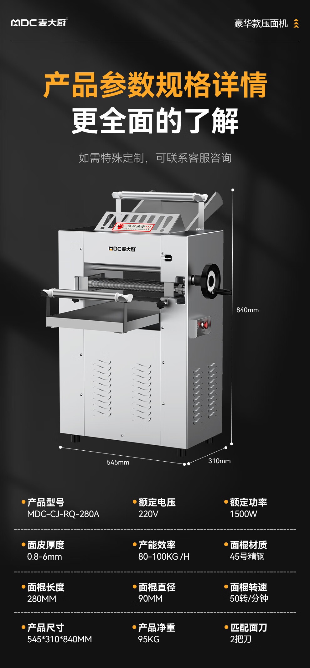 麦大厨升级款1.5KW商用压面条机95kg/h