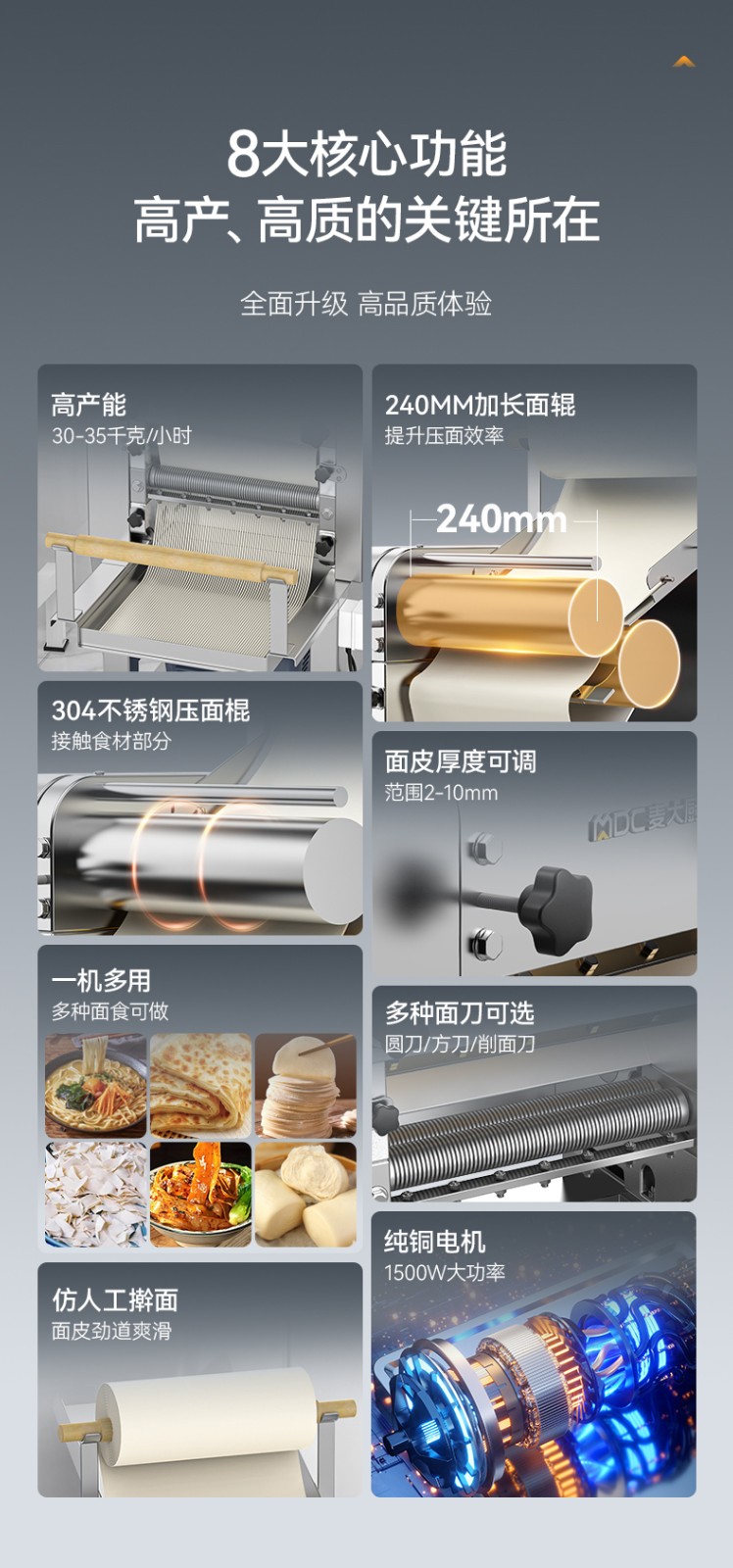 麦大厨连锁款1.5kw商用压面条机全自动轧面条机