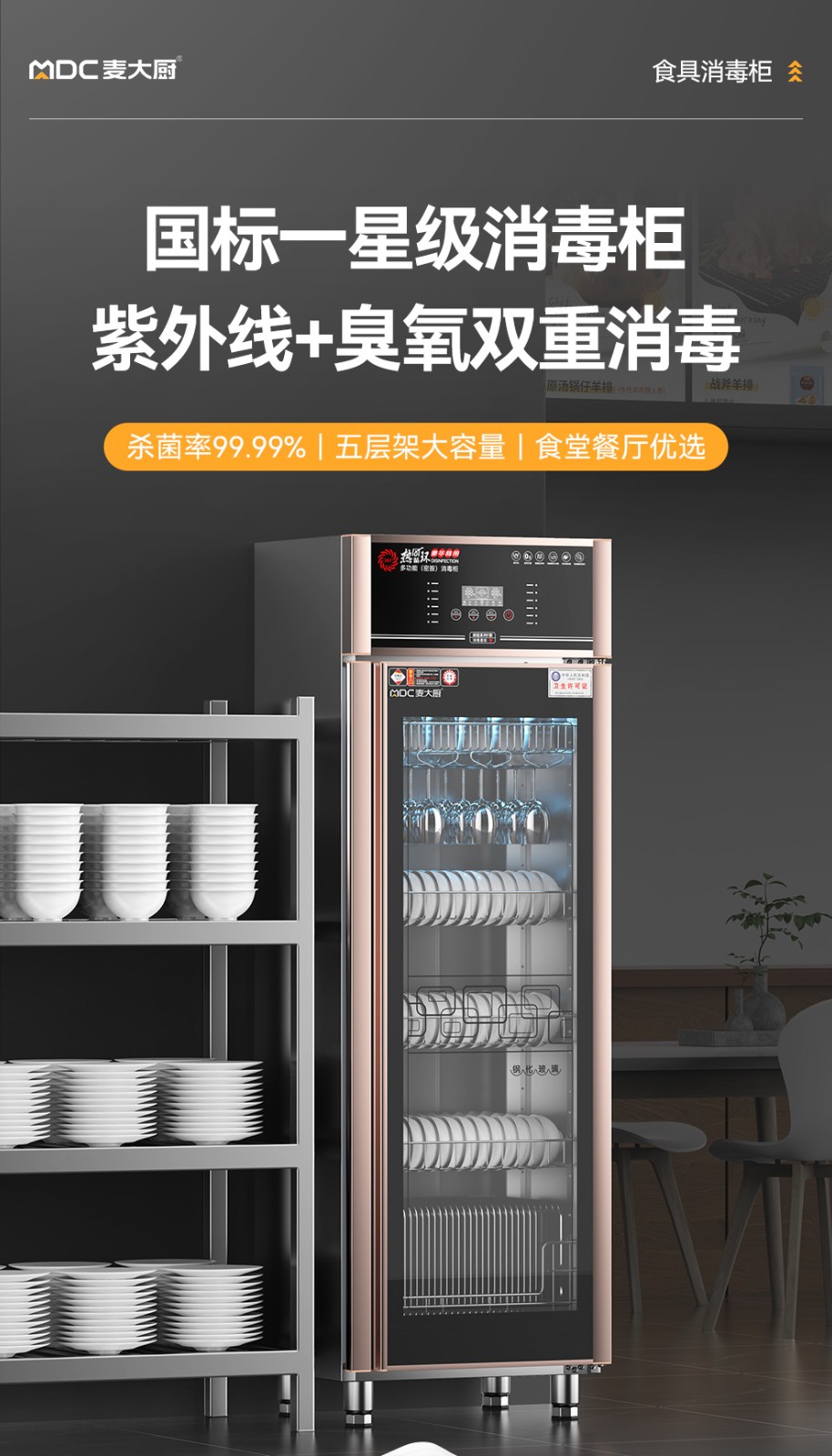 麦大厨豪华触屏款5层双门中温食具消毒柜(紫外线+臭氧+热风循环)950W