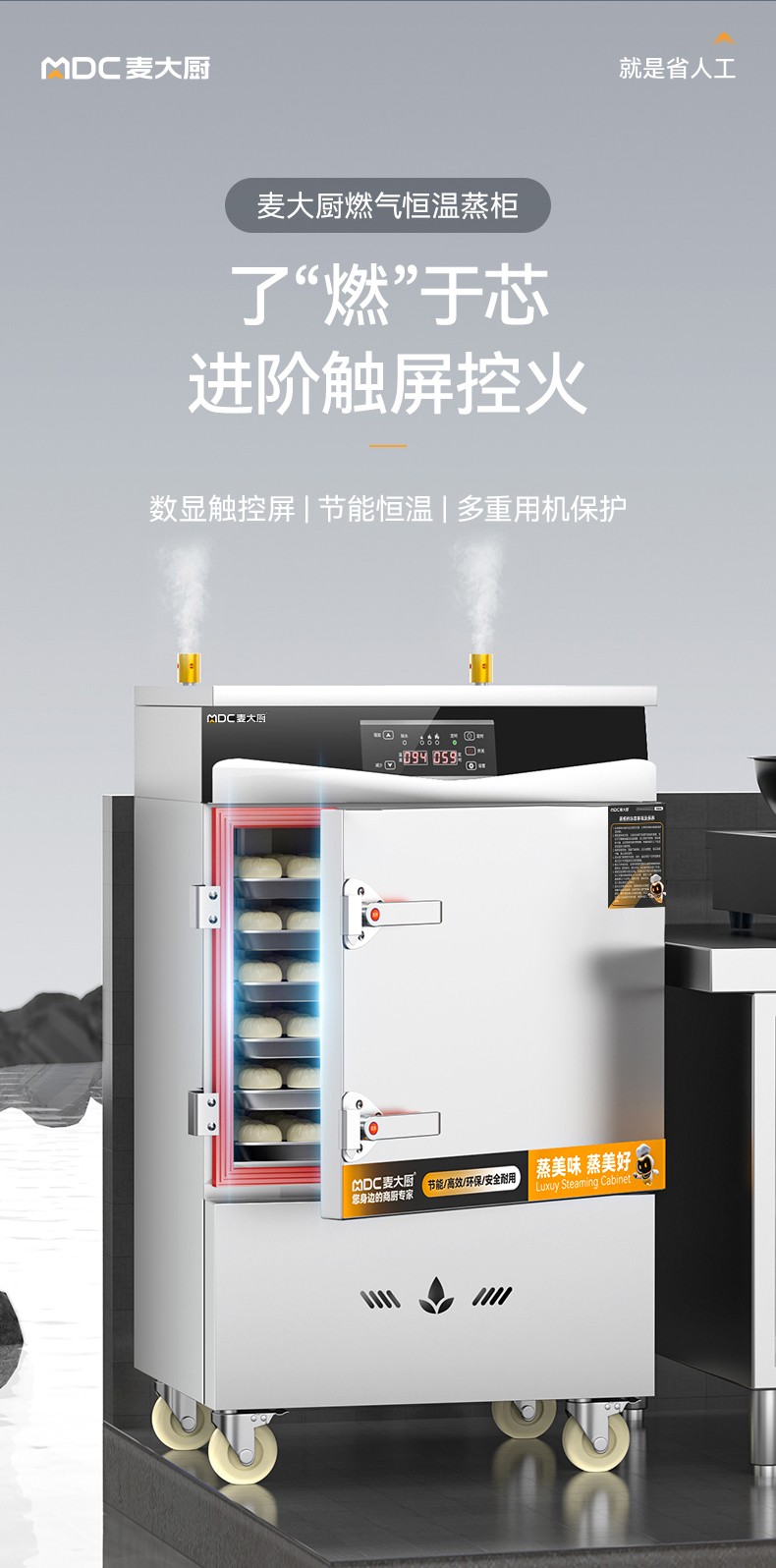 麦大厨商用单门6盘智能恒温燃气蒸饭柜大型食堂蒸饭箱
