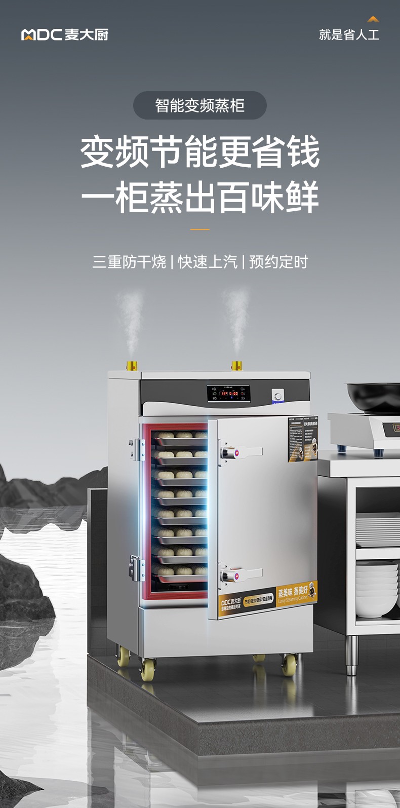 麦大厨商用蒸饭柜8盘变频款智能电蒸箱电热蒸饭车全自动蒸柜