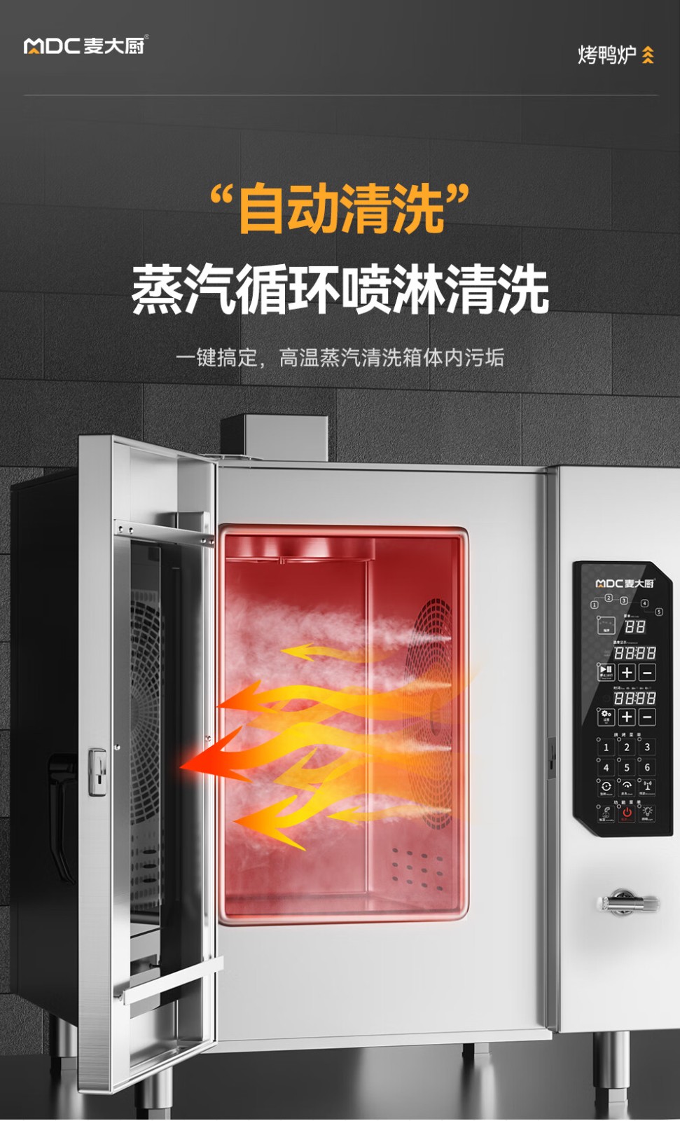 麦大厨烤鸭炉商用多功能烤炉快速+自动清洗烤鸭炉380V 12KW