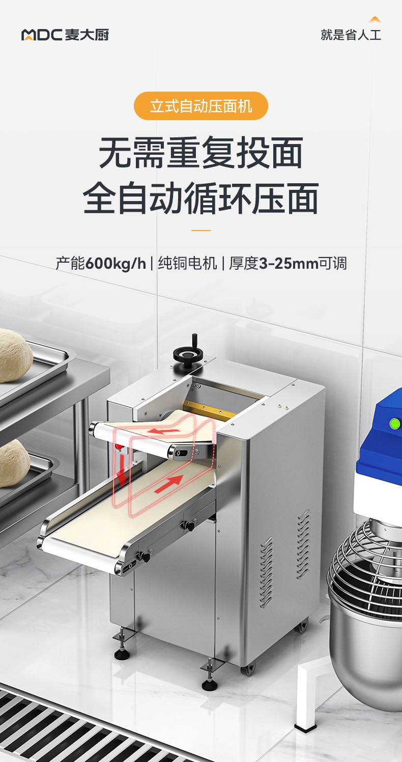 麦大厨自动压面机商用面皮轧面机揉切压面机三相自动压面机
