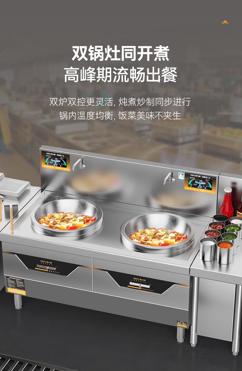 麦大厨食堂大炒锅电灶台旗舰款15KW双头酒楼饭店商用大炒炉