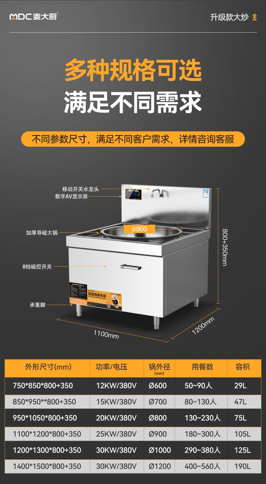 - 更多MDC商用大锅灶规格咨询在线客服