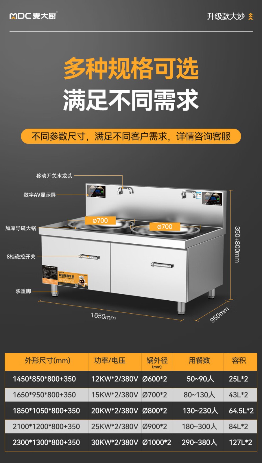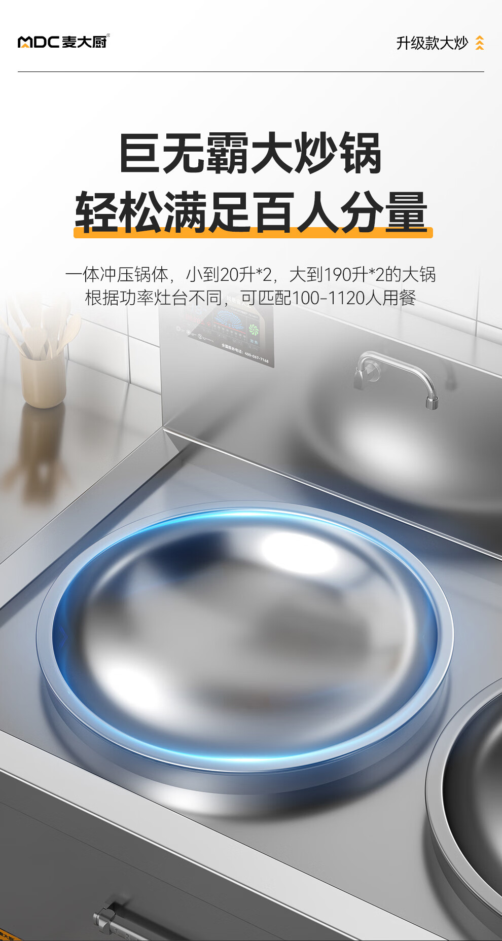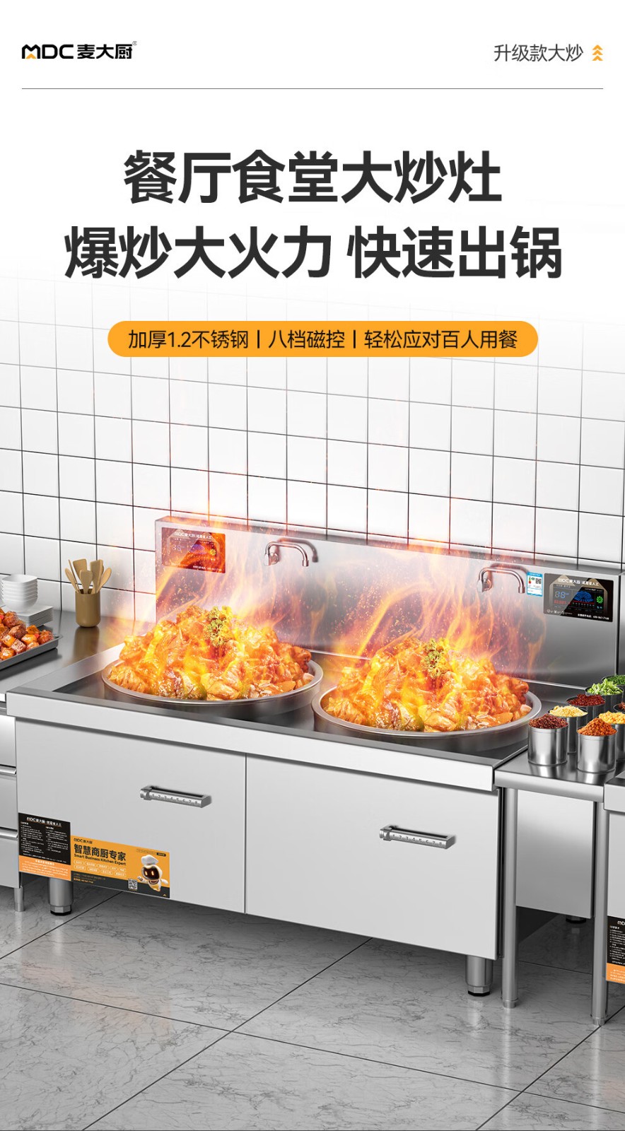 麦大厨食堂大炒锅电灶台升级款15KW双头工厂食堂大锅灶