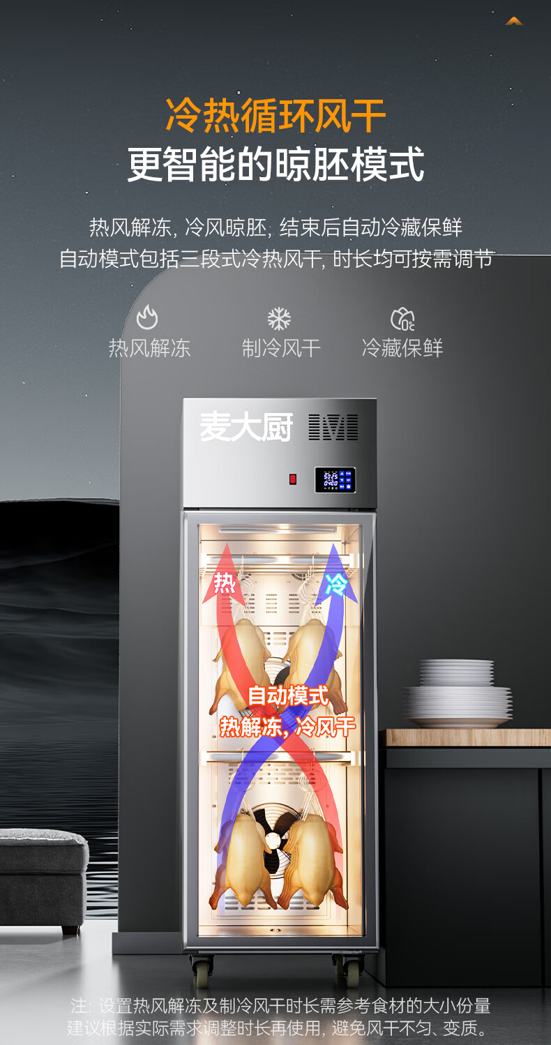 麦大厨商用晾胚柜节能至尊款880W单门烤鸭风干柜
