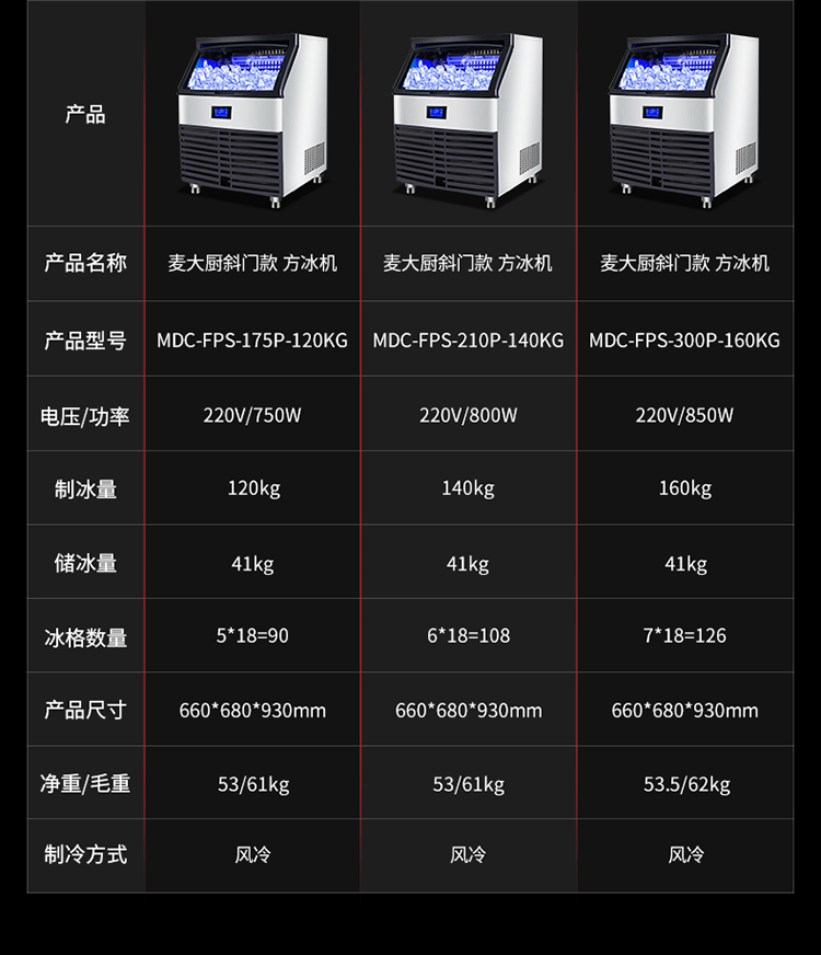 MDC商用制冰机直门风冷款台式一体60kg方冰机45冰格