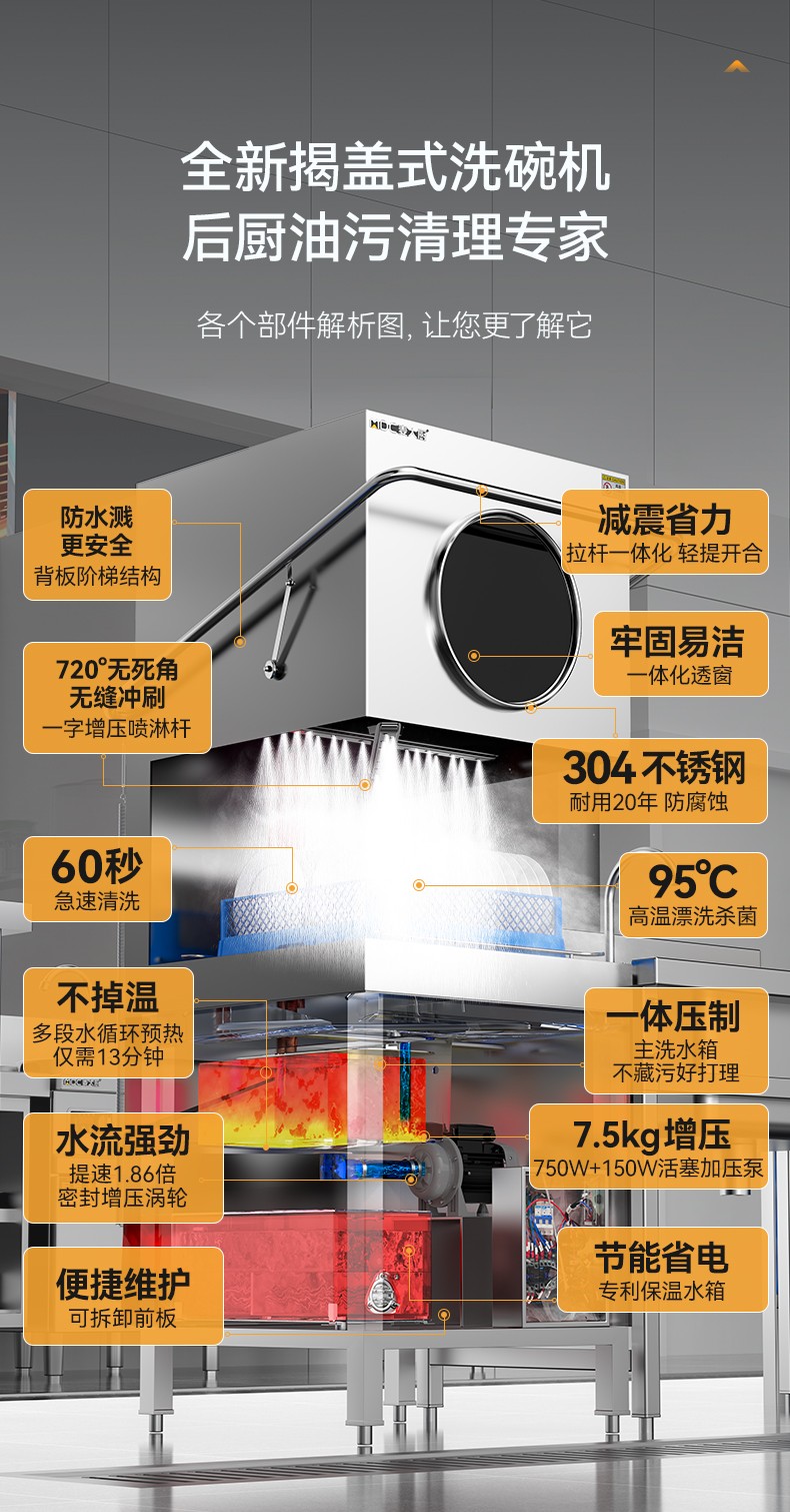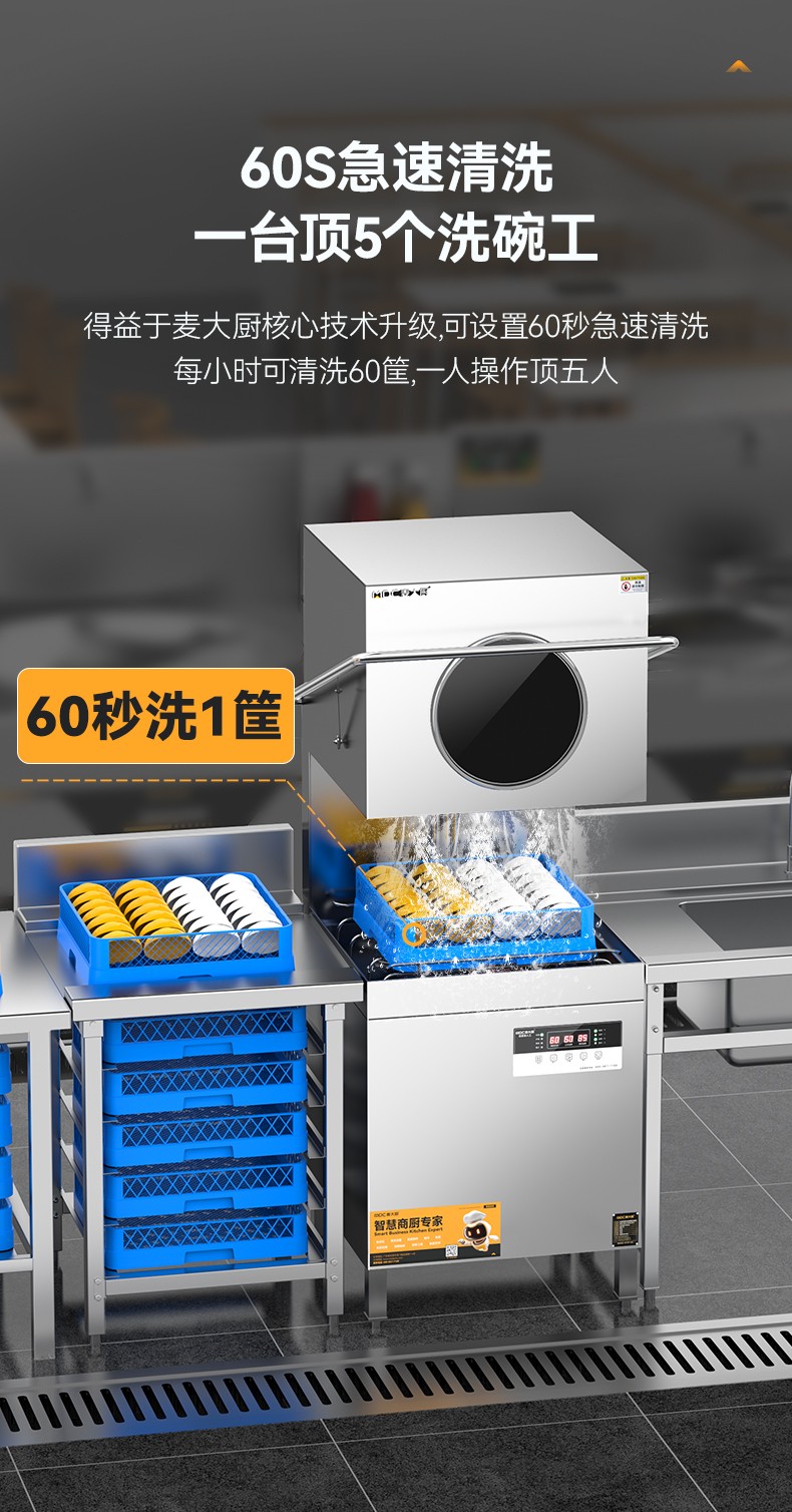 麦大厨3.0连锁热销款双泵透窗揭盖式洗碗机商用12kw