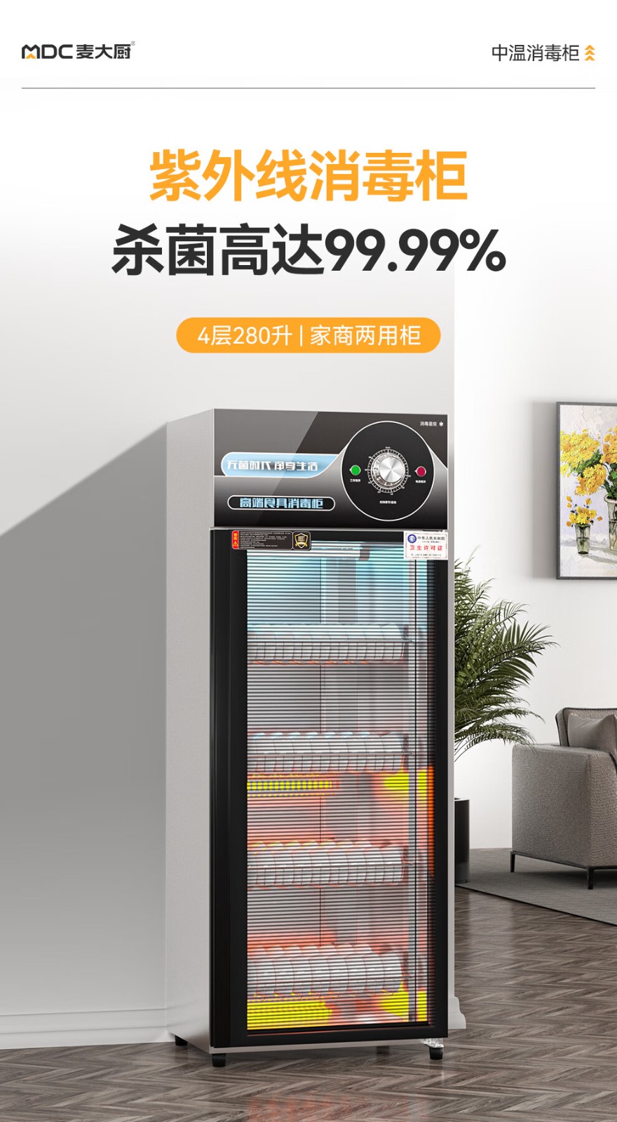 麦大厨高端款220V单门280L中温食具消毒柜610W