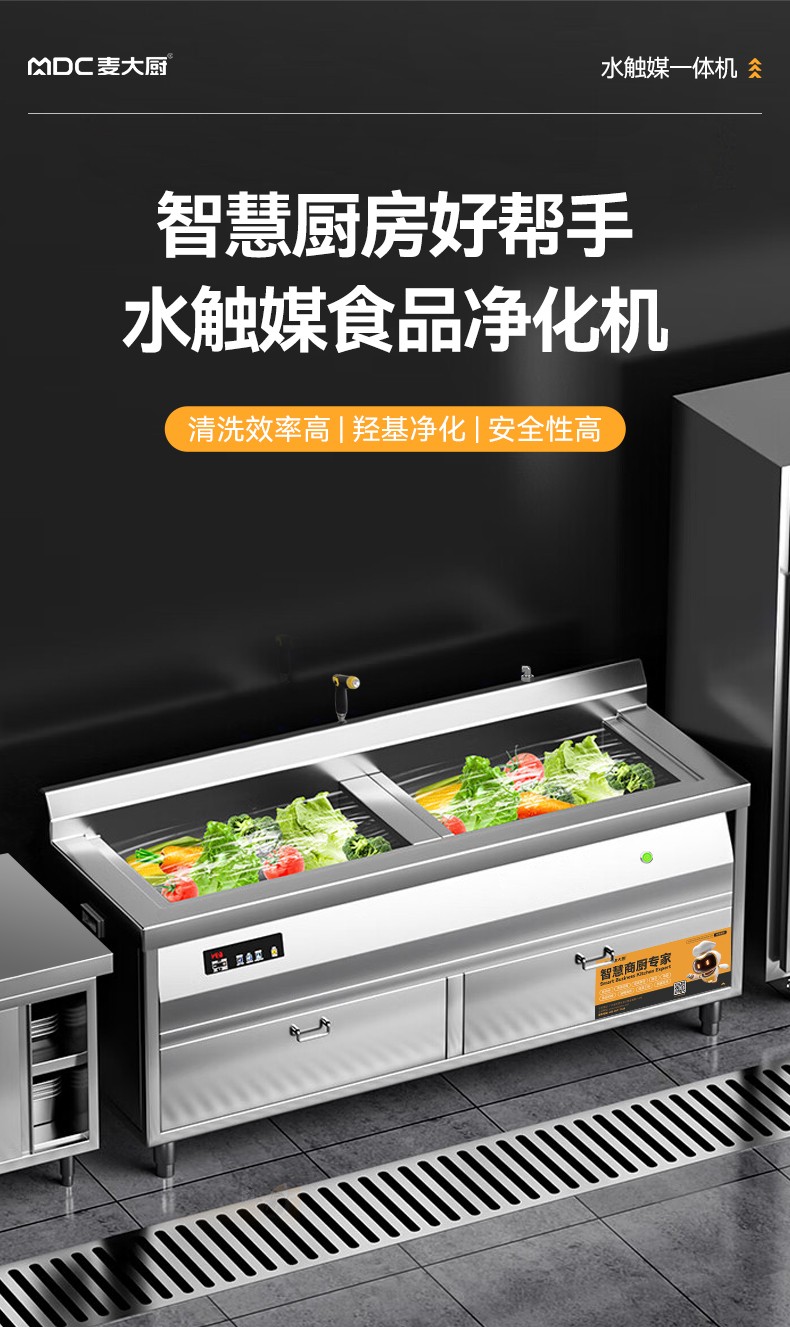 麦大厨1.2米自动商用洗菜机果蔬清洗机单缸水触媒净化机