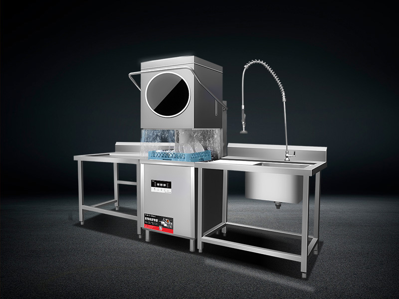 4. 高温消毒:揭盖式洗碗机通常采用高温水流进行清洗和漂洗,清洗水温一般在60°C至85°C之间,能够有效杀灭餐具表面的细菌和病毒,确保餐具的卫生安全。这一特点特别适合需要严格卫生标准的餐饮场所,如医院食堂和学校食堂。