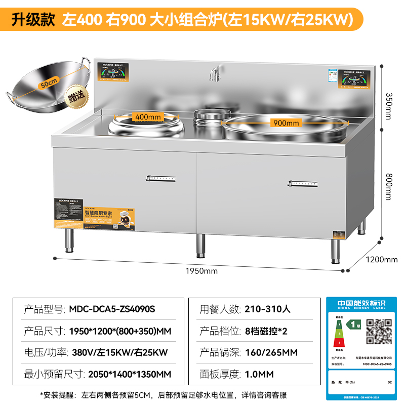 麦大厨升级款左400右1000大小组合炉商用