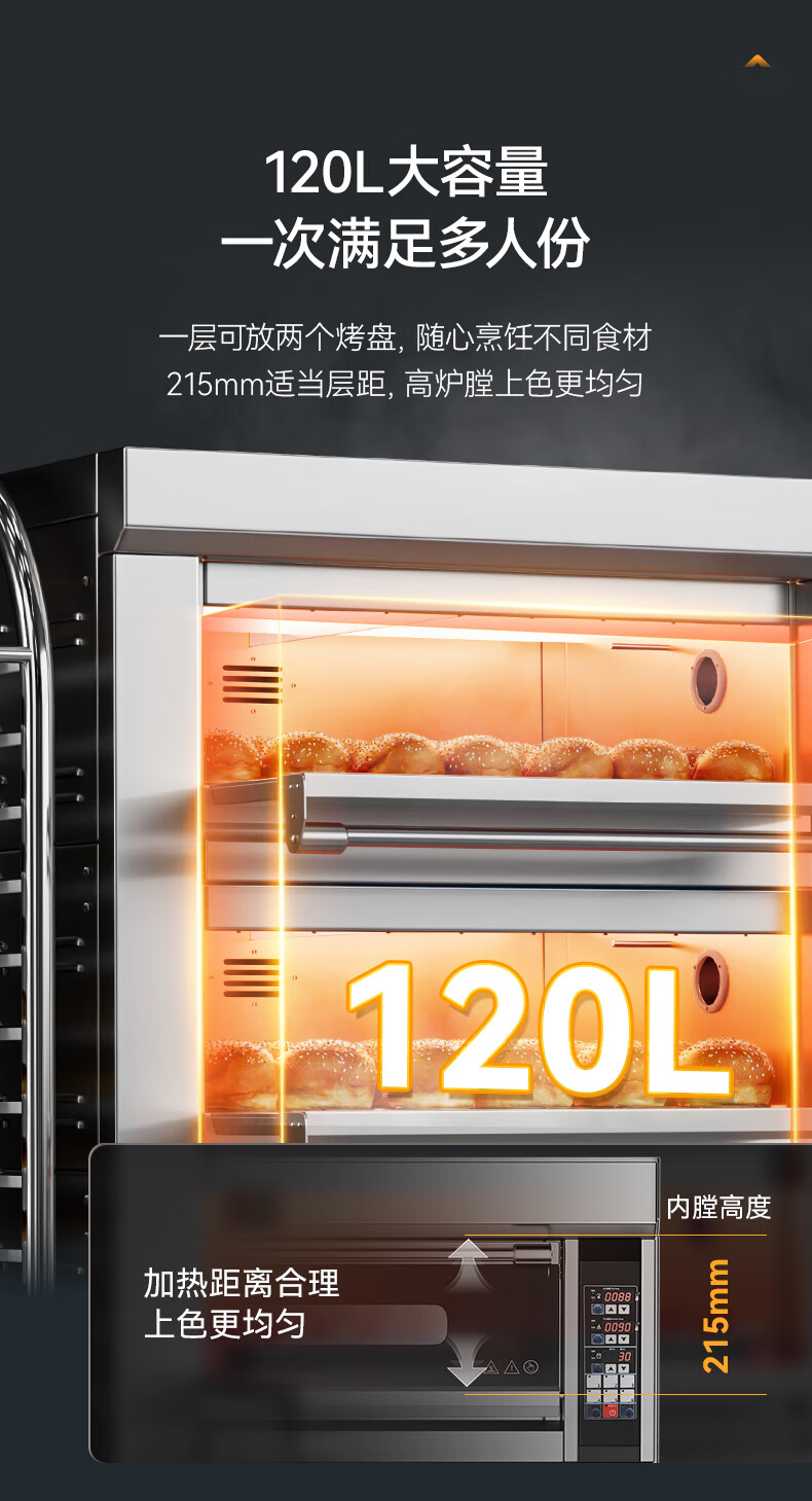 麦大厨豪华款两层两盘智能控温上下独立烤箱6.4KW