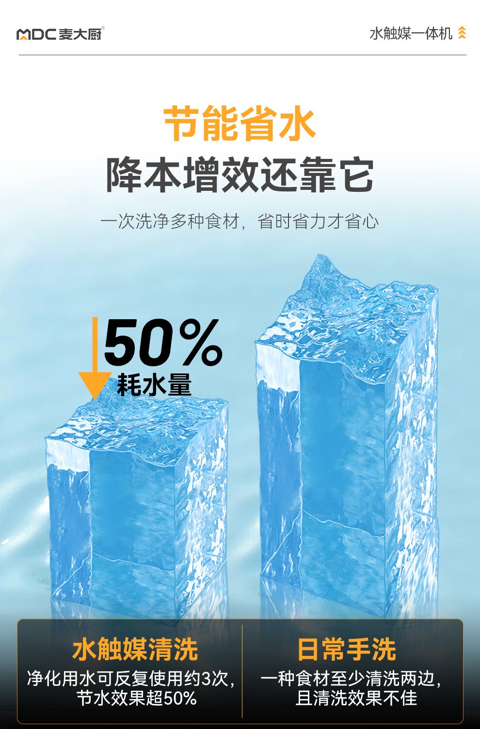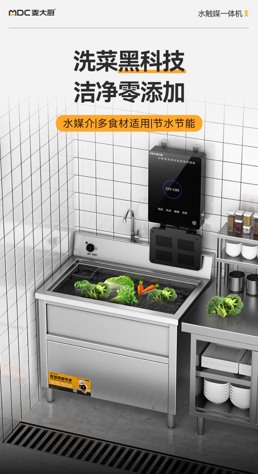 麦大厨1.0m单槽壁挂式水触媒净化清洗一体机商用