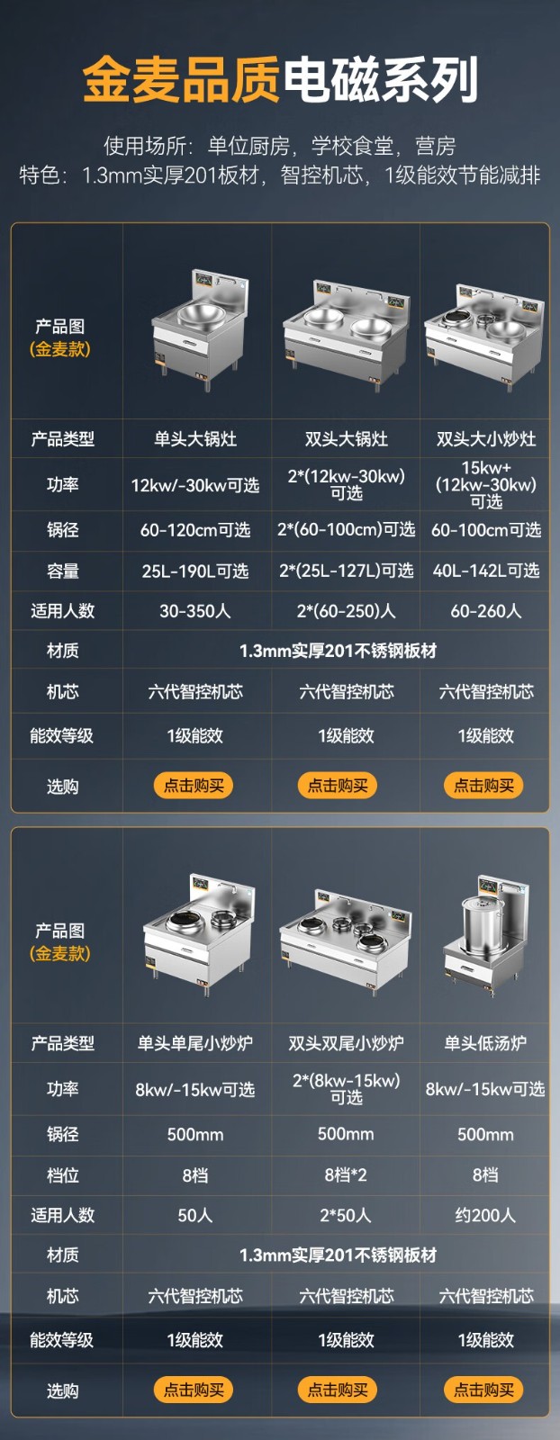 麦大厨金麦款201材质电磁大炒炉单头大锅灶1200