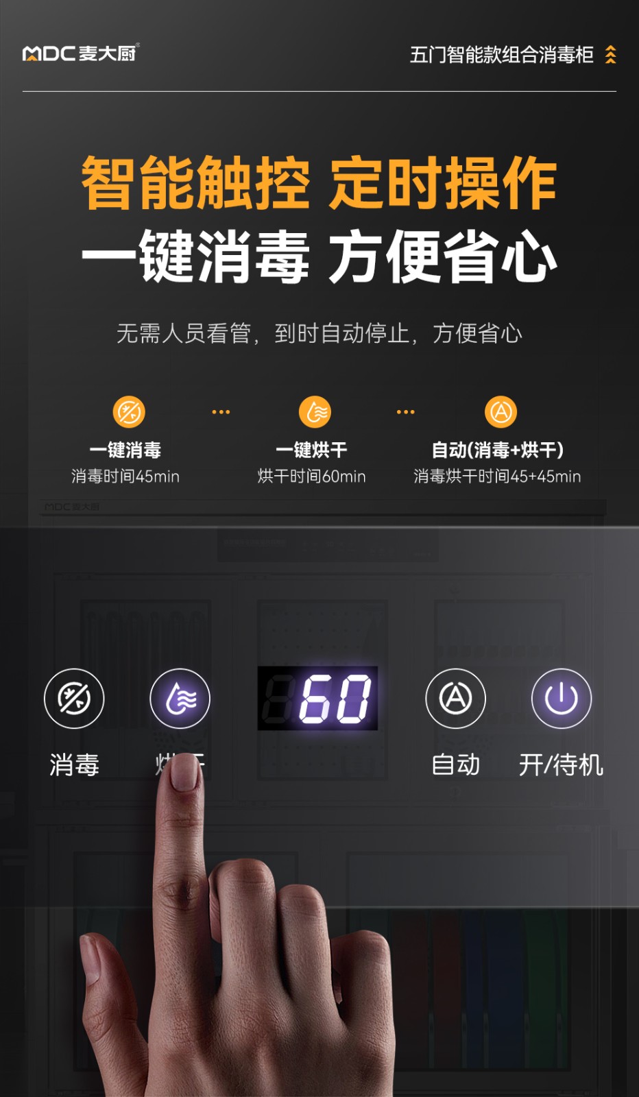 麦大厨智能款五门厨房用具组合臭氧紫外线热风循环消毒柜